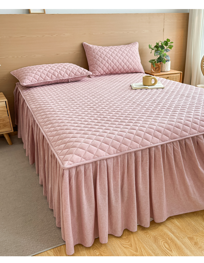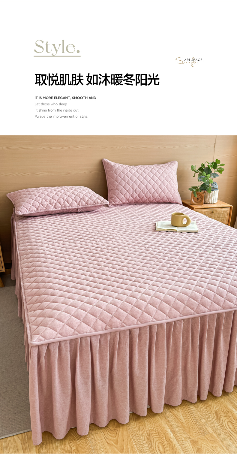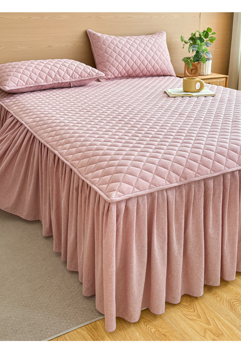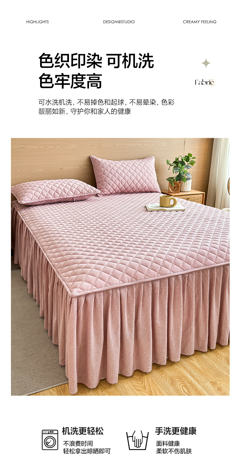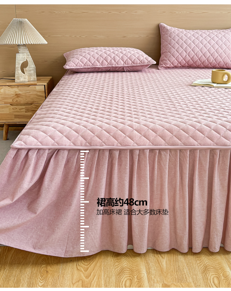 糯米猪家纺 2024新款全棉色织水洗棉夹棉床裙 豆沙粉