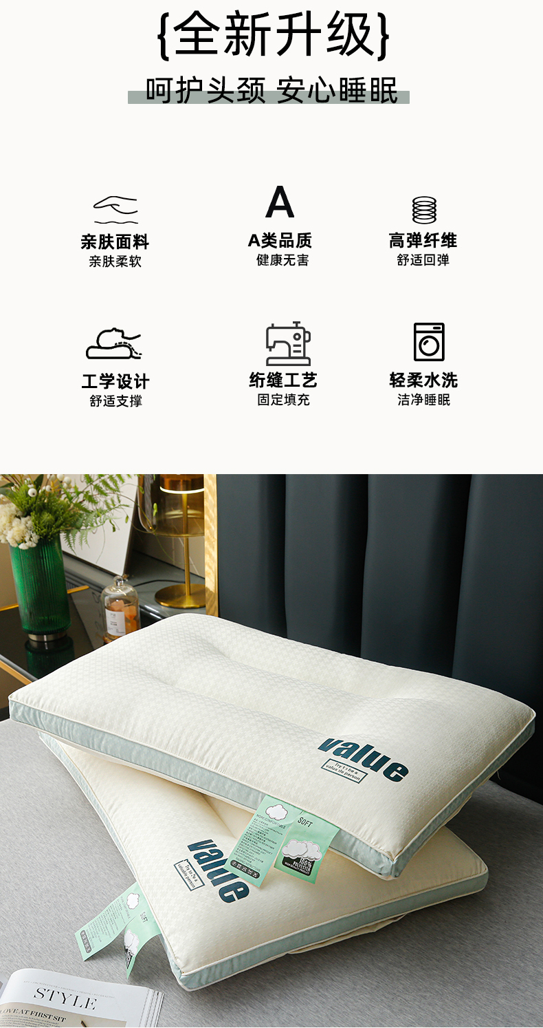 商品名称:(总)织布人 2024新款枕芯A类云朵舒柔枕头酒店家用护颈枕头芯亲子系列