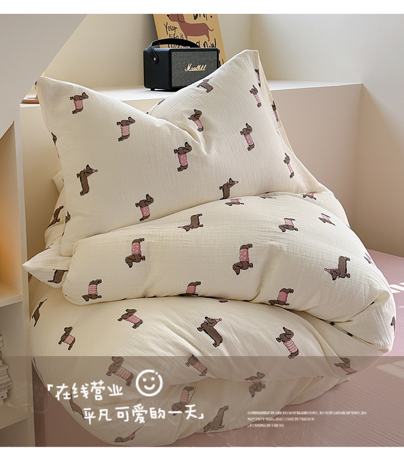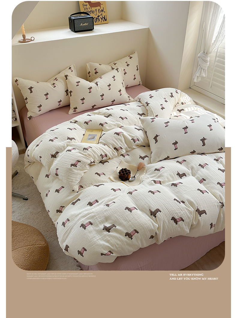 2021A类全棉双层纱四件套纯棉三件套【小爱心】,小爱心