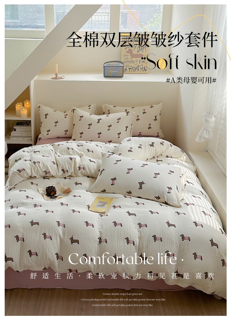 (总)萝莉家纺 2025新款全棉双层皱皱纱四件套(第三批)