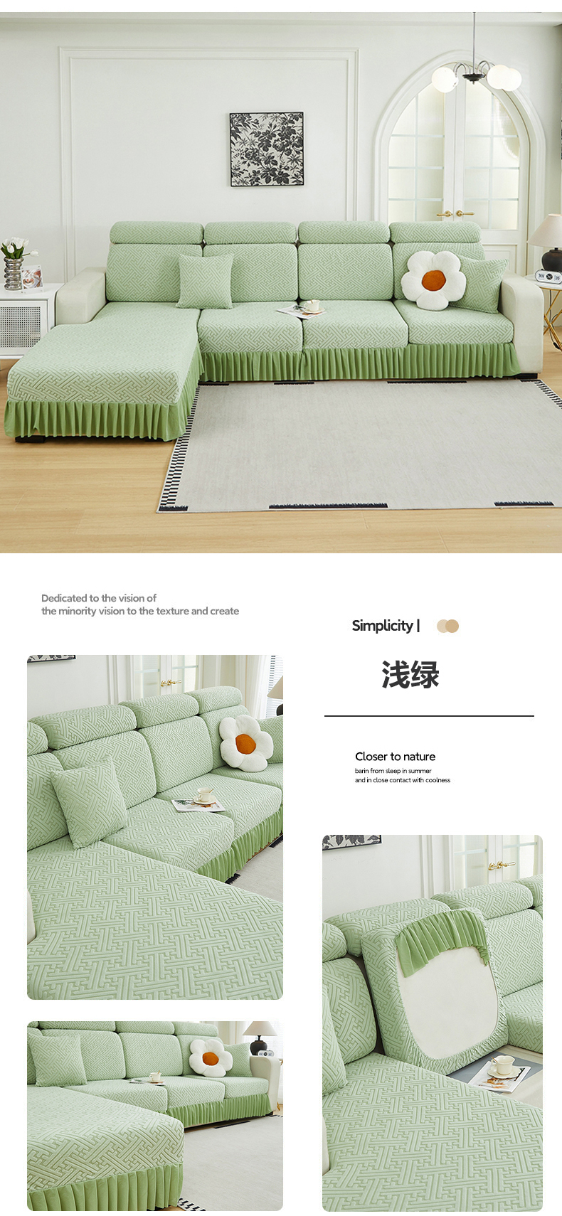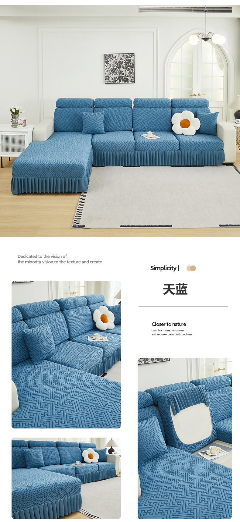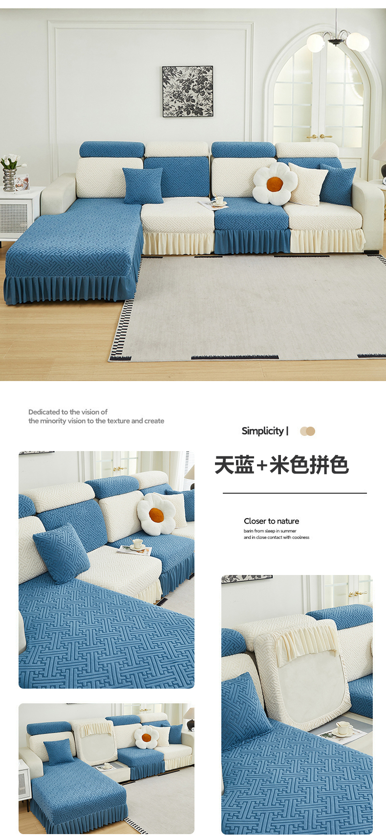 (总)天下布艺 2023新款纯色摇粒绒升级北欧百褶裙摆工艺通用沙发笠—斜格裙边,1,2,3,4,5,6,7,8,拼色1