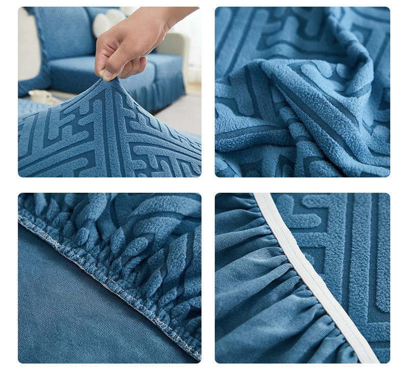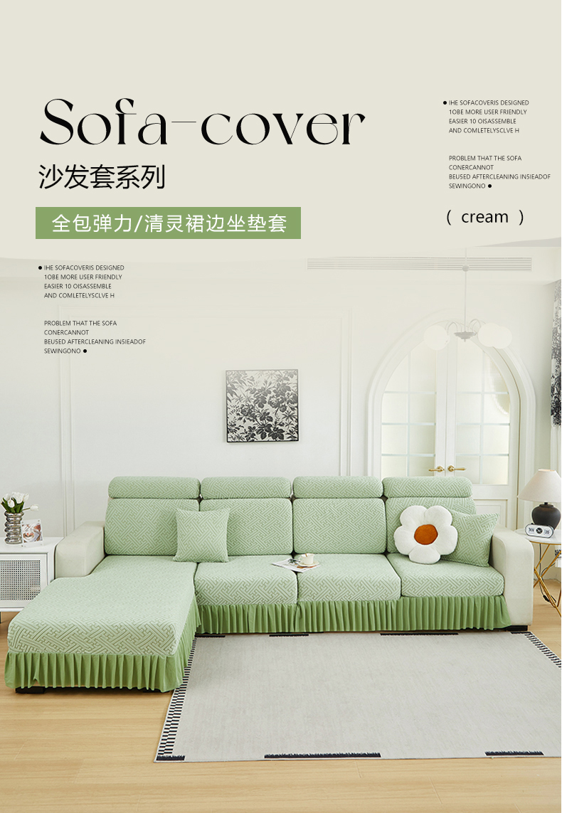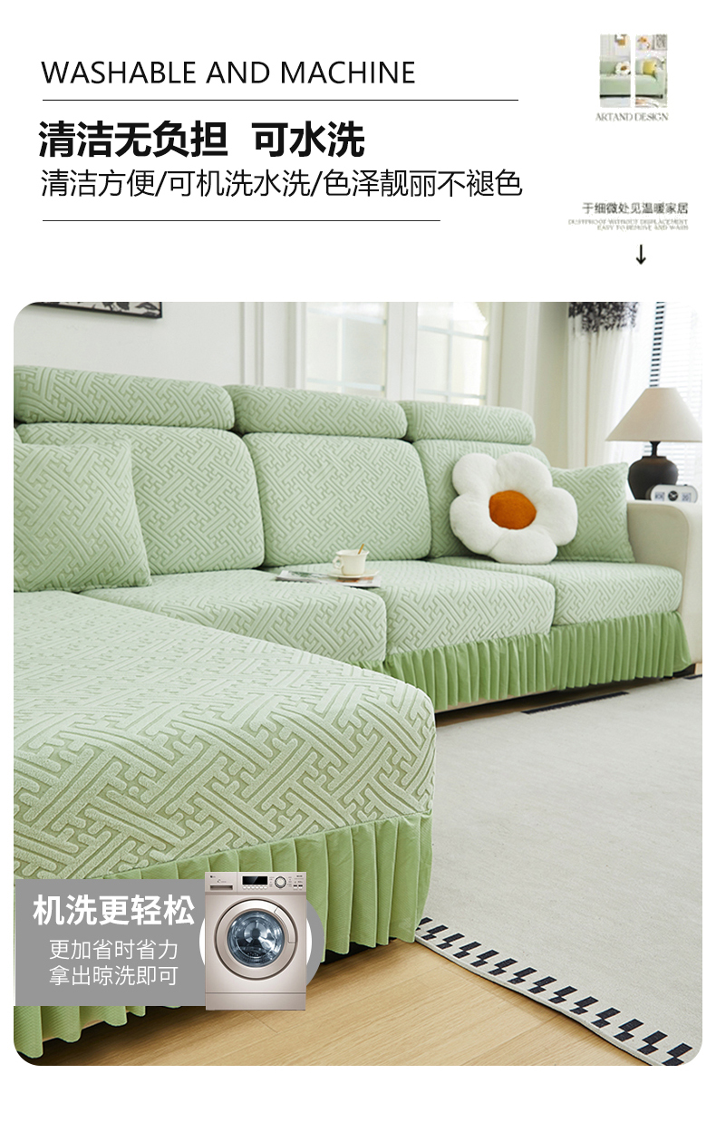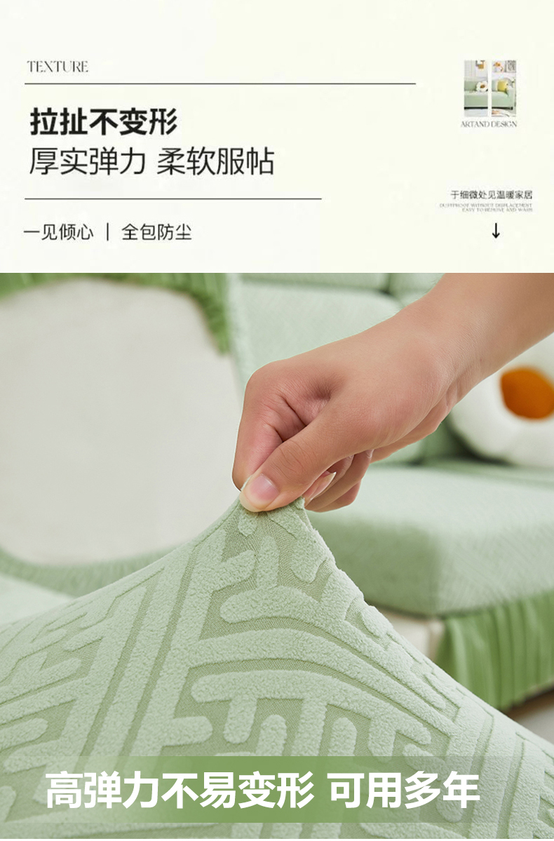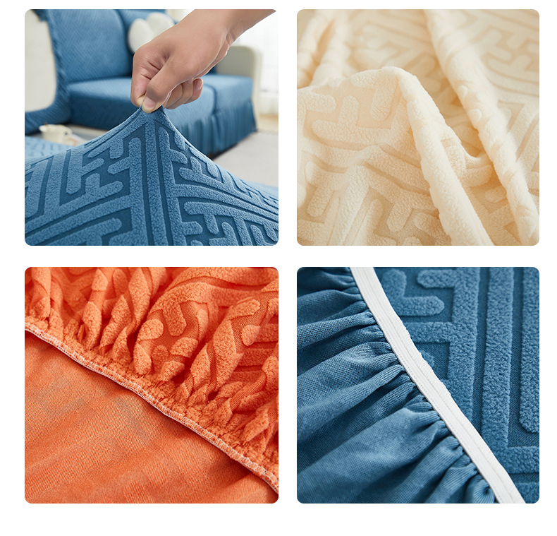 (总)天下布艺 2023新款纯色摇粒绒升级北欧百褶裙摆工艺通用沙发笠—斜格裙边,1,2,3,4,5,6,7,8,拼色1