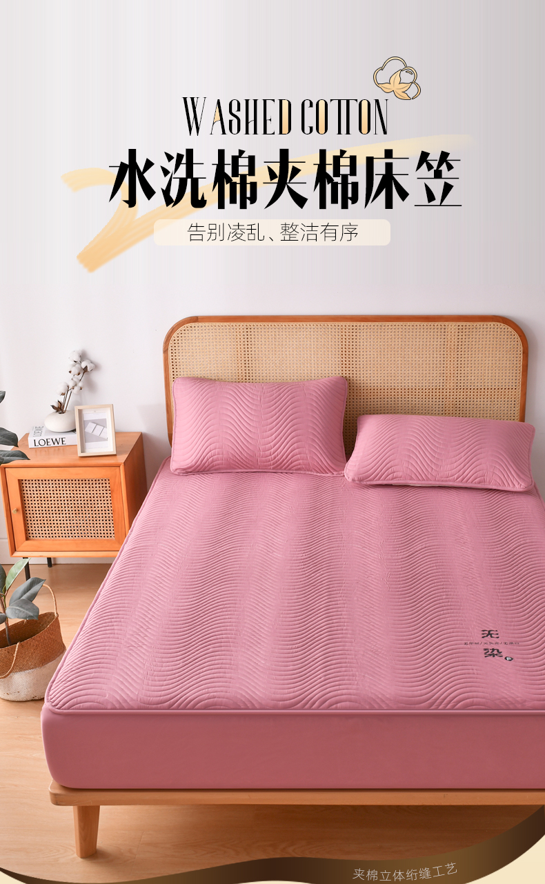 鑫顺欣 2025新款无染水洗棉夹棉床笠 高贵玫
