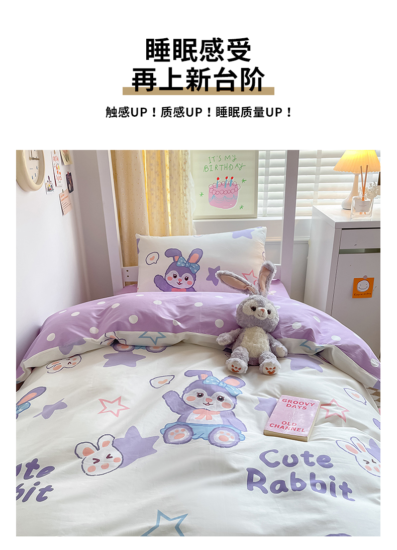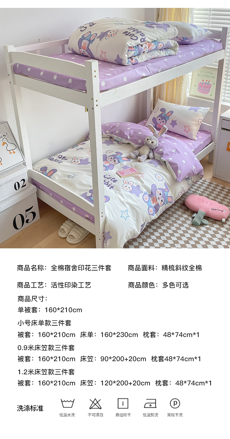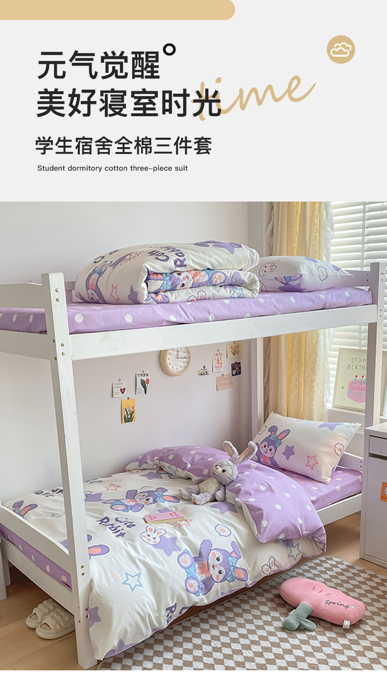 当前位置: 91家纺网 > 商品网购 > 床品套件 > 三件套 > 金鑫汇家纺 2024新款全棉宿舍印花三件套第一批 梦幻兔
