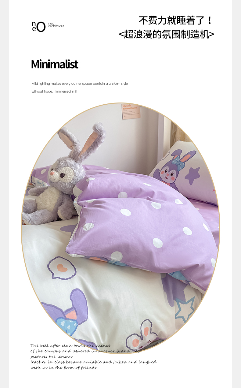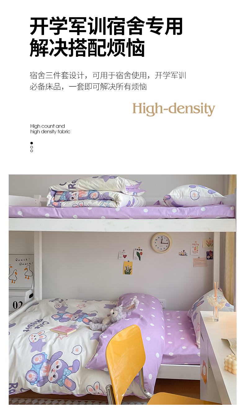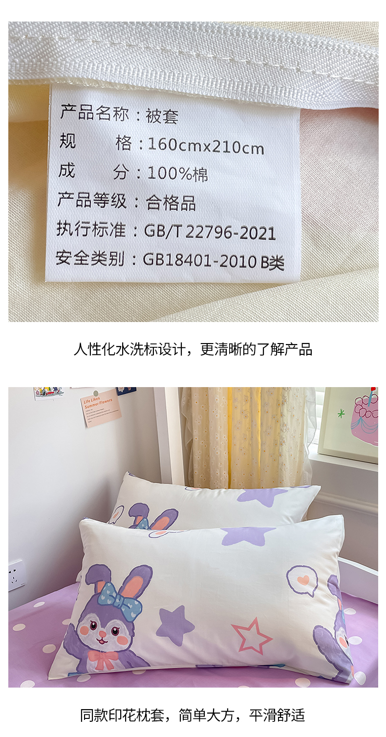 当前位置: 91家纺网 > 商品网购 > 床品套件 > 三件套 > 金鑫汇家纺 2024新款全棉宿舍印花三件套第一批 梦幻兔