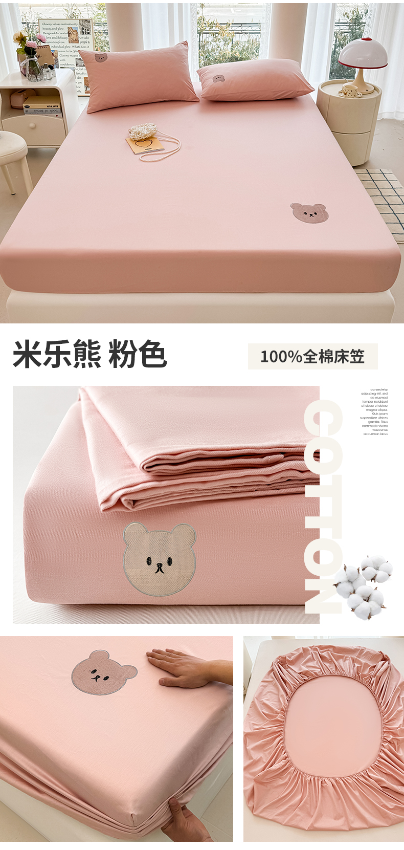 商品名称:居眠 2024新款A类全棉米乐熊单层床笠 米乐熊 粉色