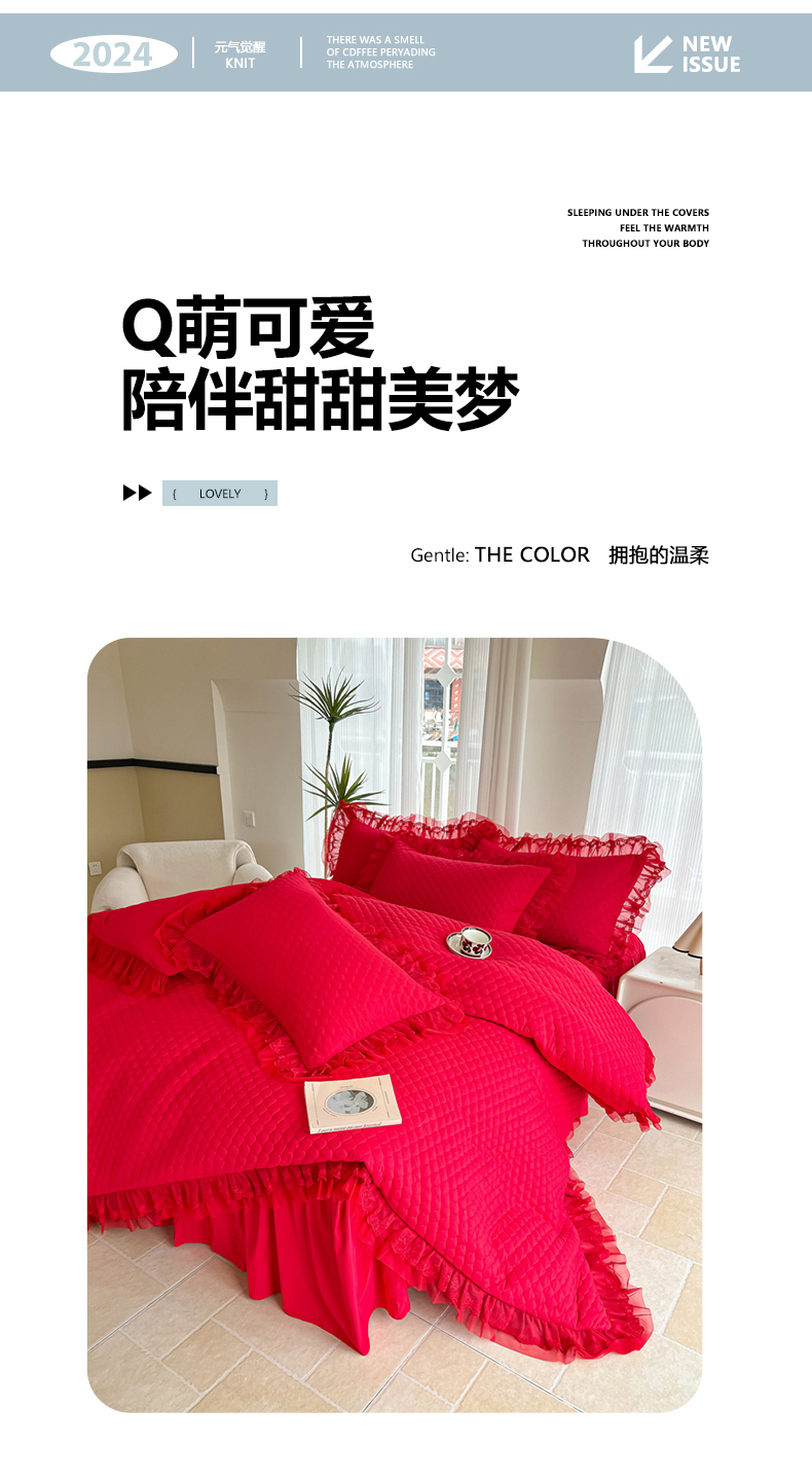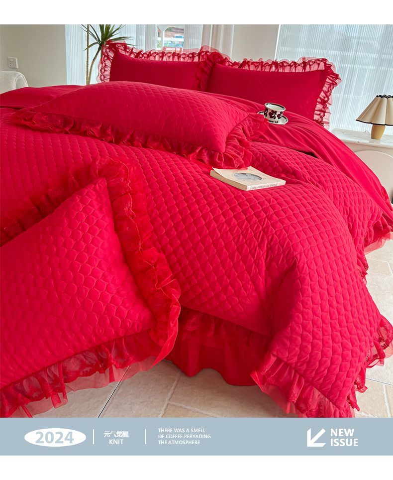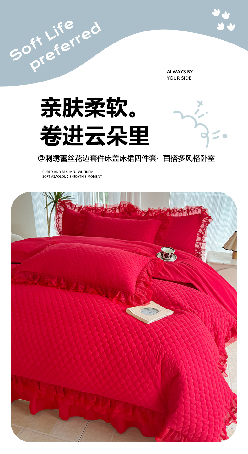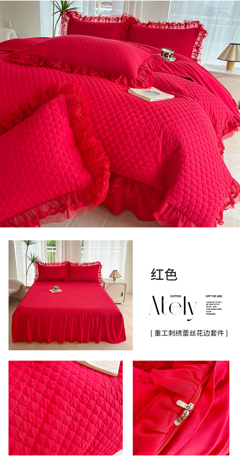 当前位置: 91家纺网 > 商品网购 > 床品套件 > 四件套 > 全棉普通四件套 > 2026新款法式高级芭蕾风重工刺绣蕾丝花边套件床盖床裙三件套四件套 芭蕾-红