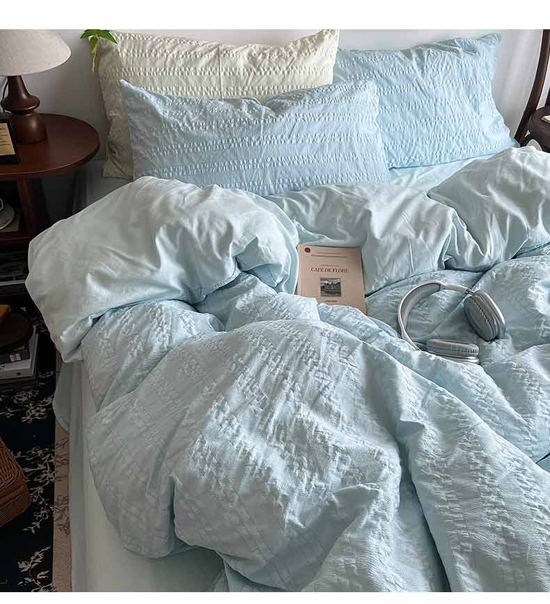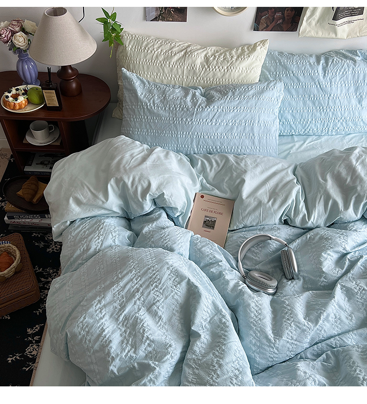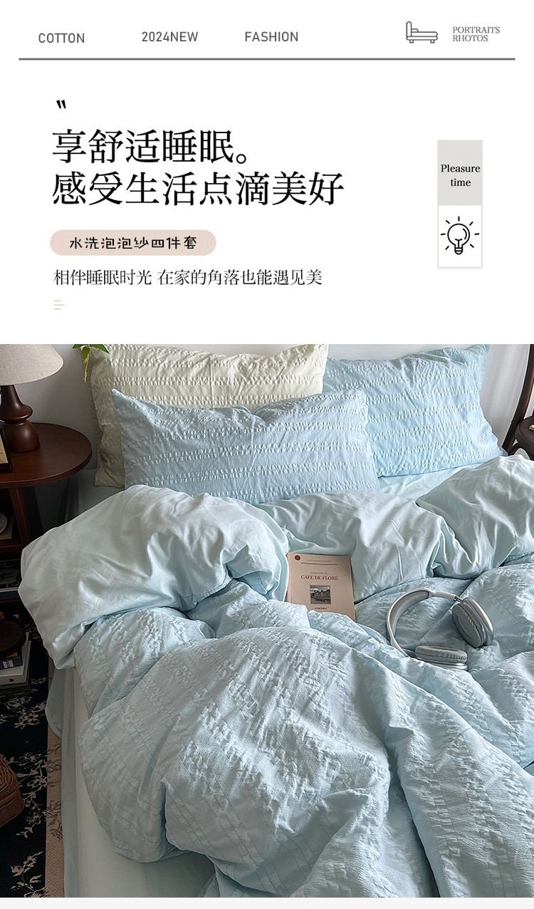(总)原素 2024新品ins风简约款泡泡纱四件套