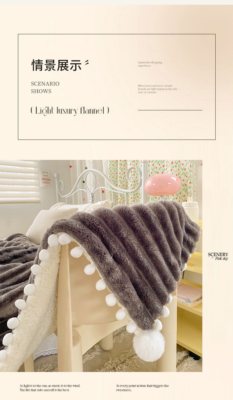 (总)潮邦创意家居 2025新款 奶芙绒流苏球毛毯,薄荷绿,焦糖咖,绵云白,浅蓝灰,深暮灰,甜莓粉