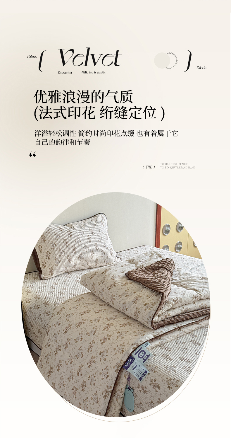 琳可家居 2024新款印花款13070双面全棉砂洗床盖三件套 安安