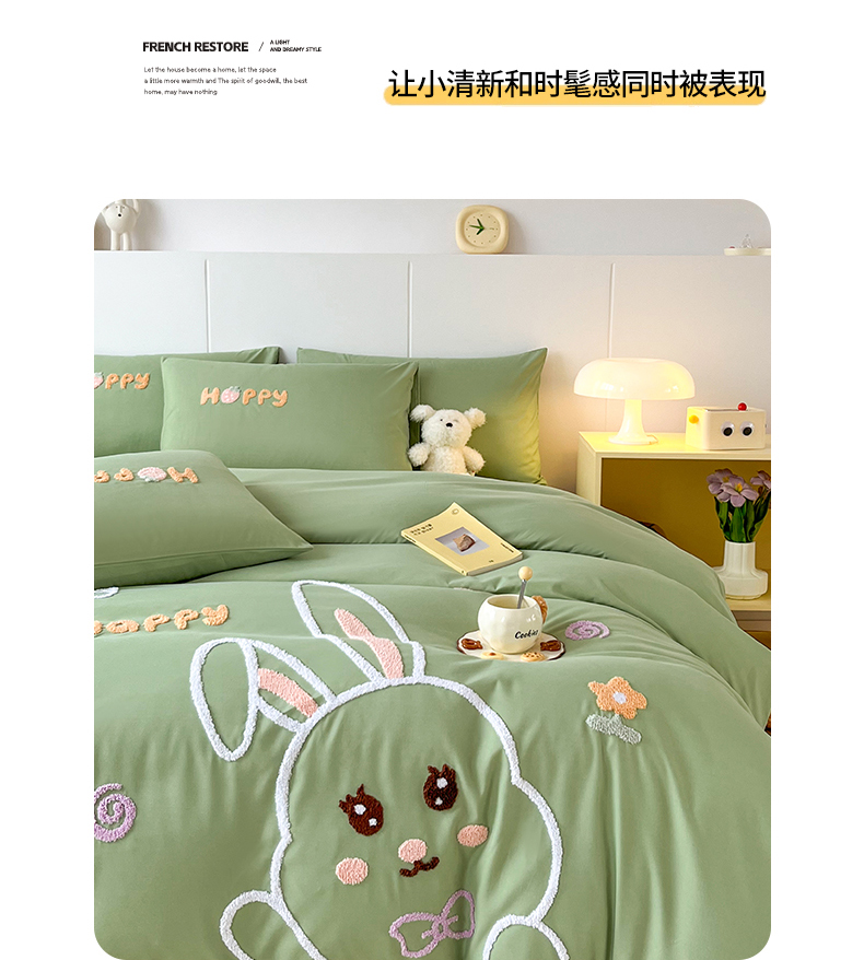 当前位置: 91家纺网 > 商品网购 > 床品套件 > 四件套 > 磨毛活性四件套 > 言熙居家纺 2024新款加厚磨毛110克亲肤棉四件套 香草绿