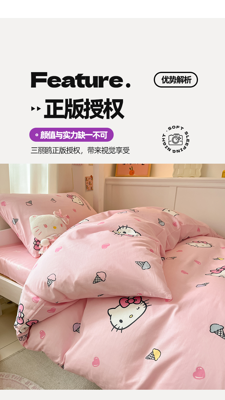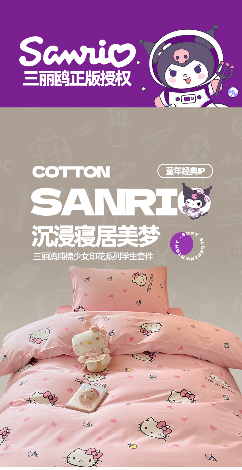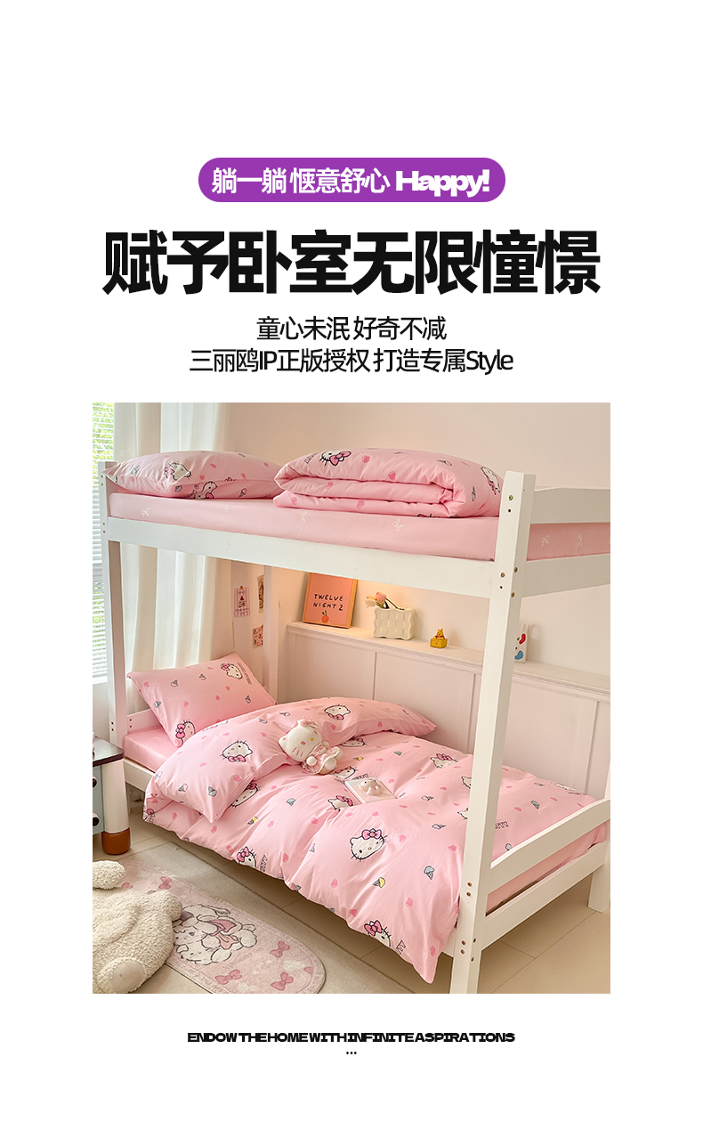 当前位置: 91家纺网 > 商品网购 > 床品套件 > 四件套 > 全棉普通四件套 > 2024新款三丽鸥授权全棉少女印花系列学生三件套四件套 棉三丽鸥-粉粉甜美kitty