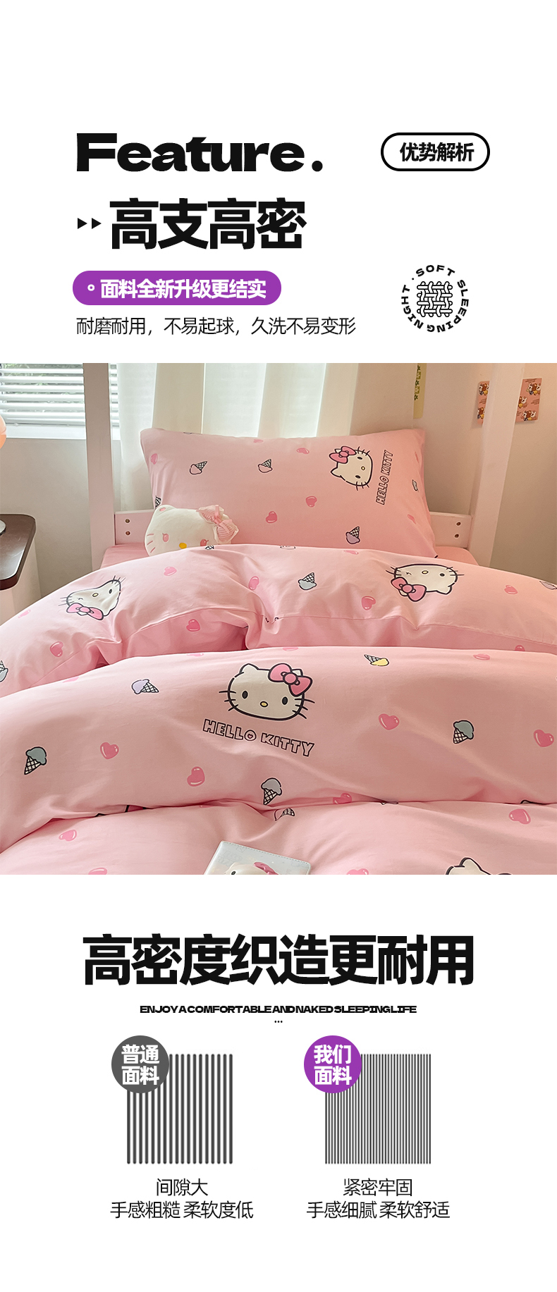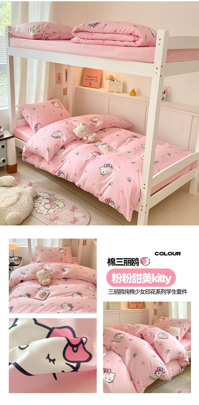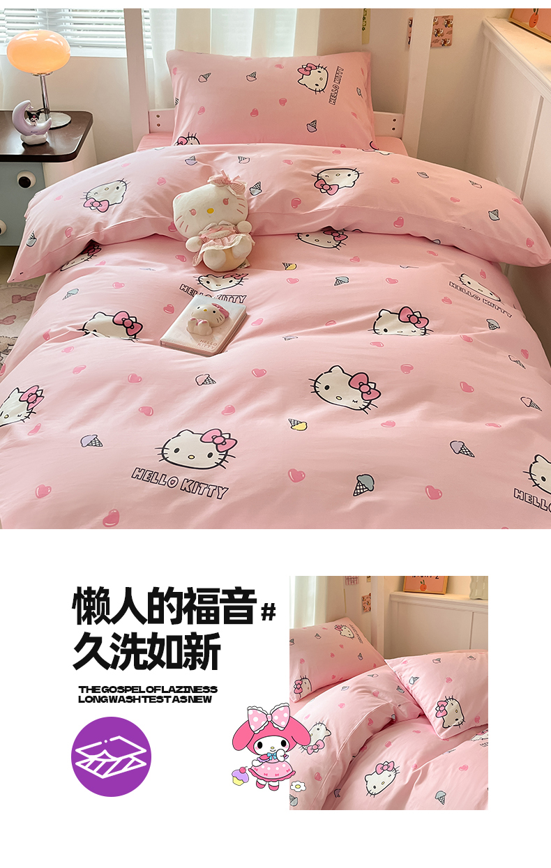 当前位置: 91家纺网 > 商品网购 > 床品套件 > 四件套 > 全棉普通四件套 > 2024新款三丽鸥授权全棉少女印花系列学生三件套四件套 棉三丽鸥-粉粉甜美kitty