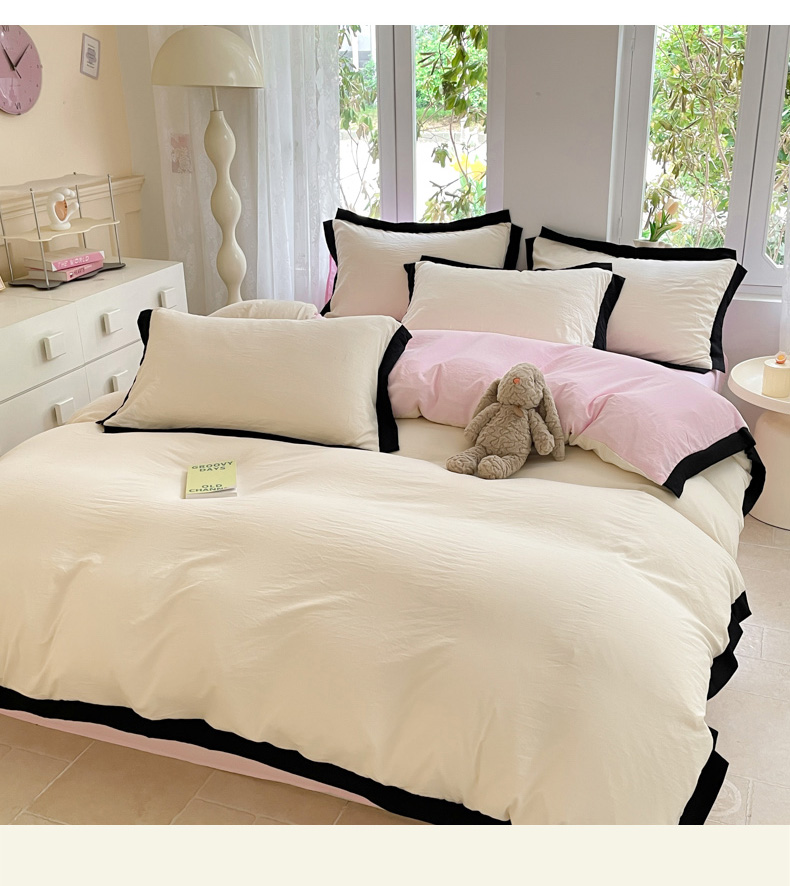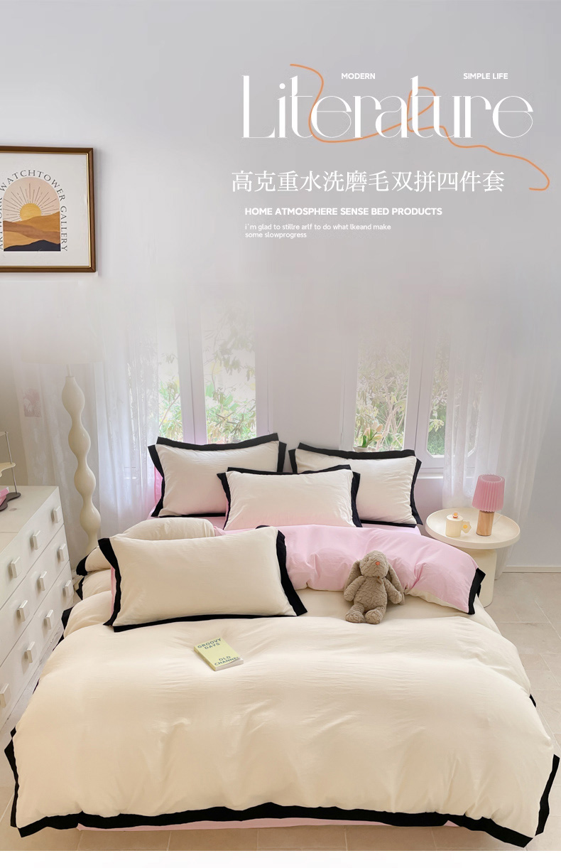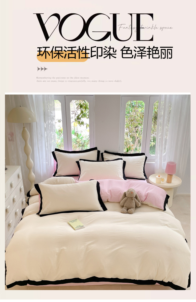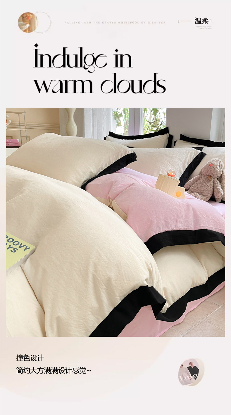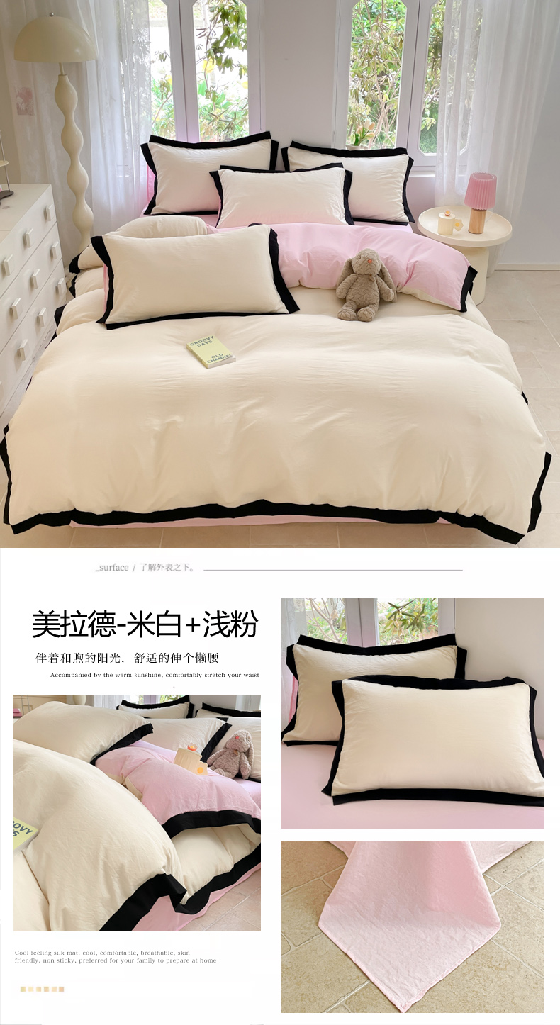 慕澄家纺 2024新款美拉德风双拼四件套 美拉德-米白+浅粉