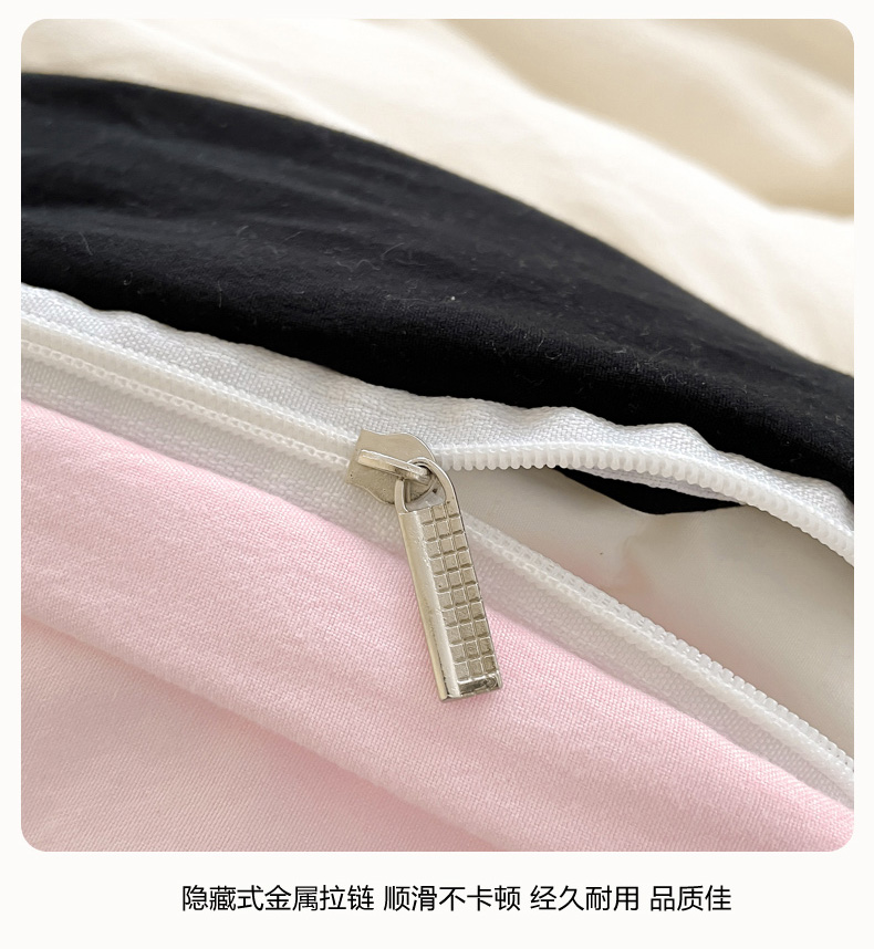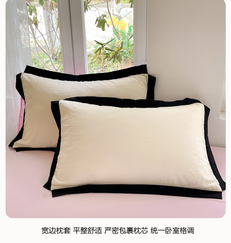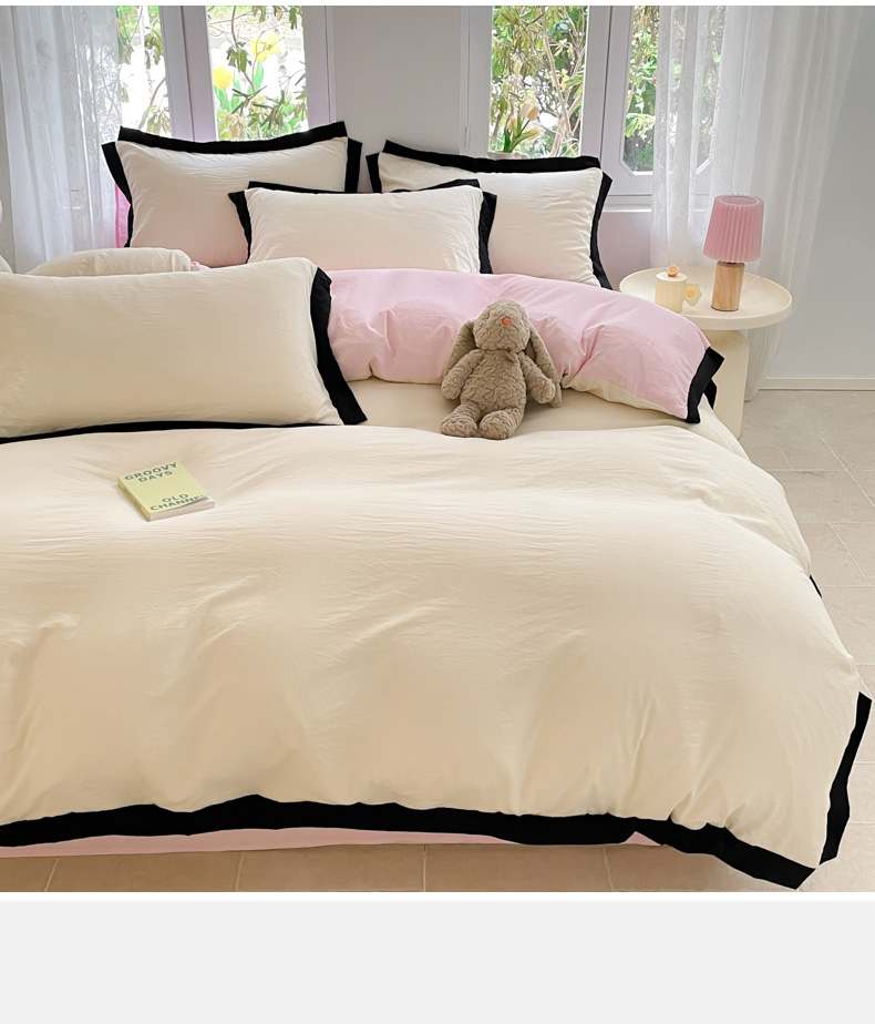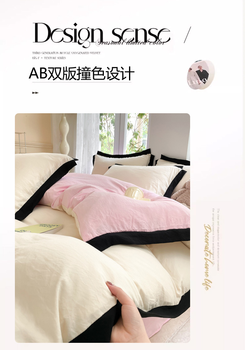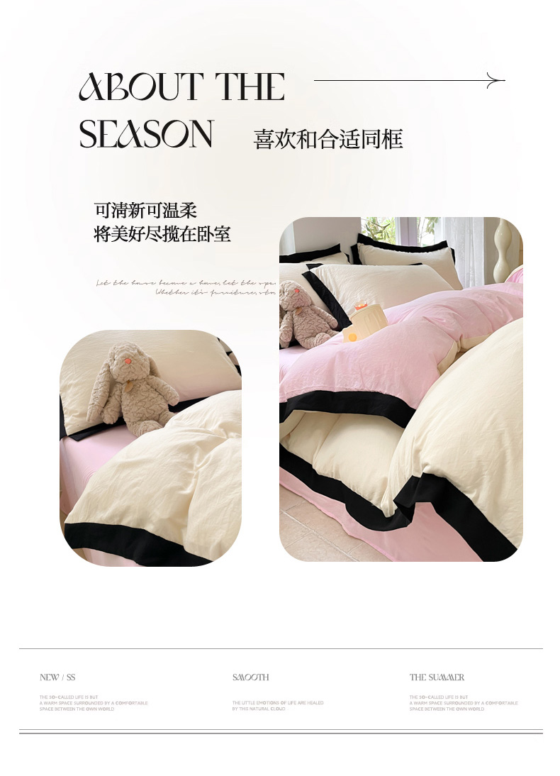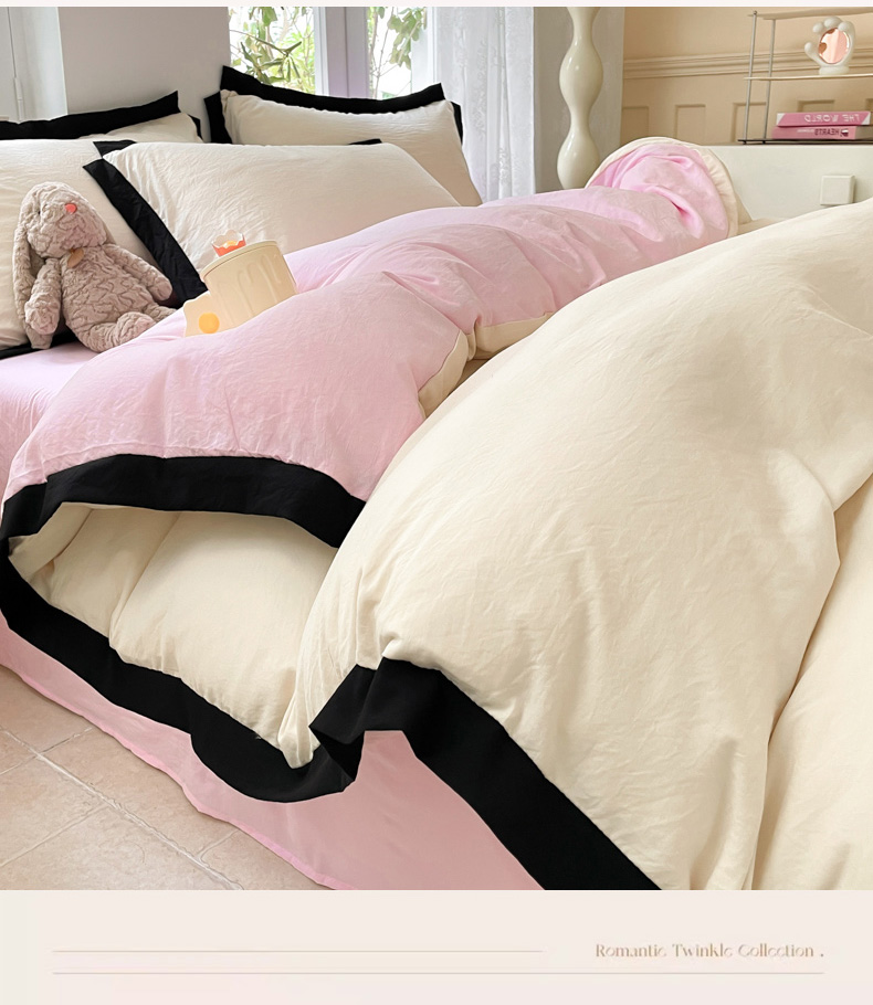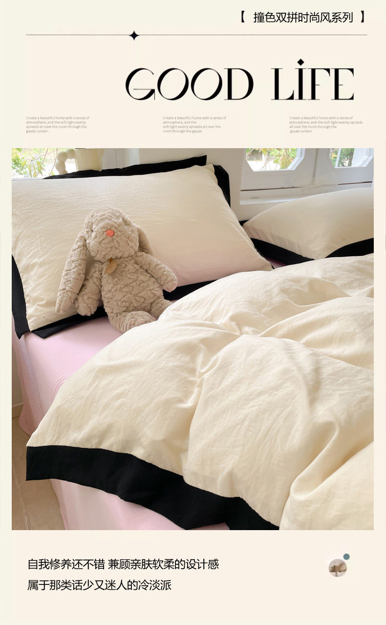 慕澄家纺 2024新款美拉德风双拼四件套 美拉德-米白+浅粉
