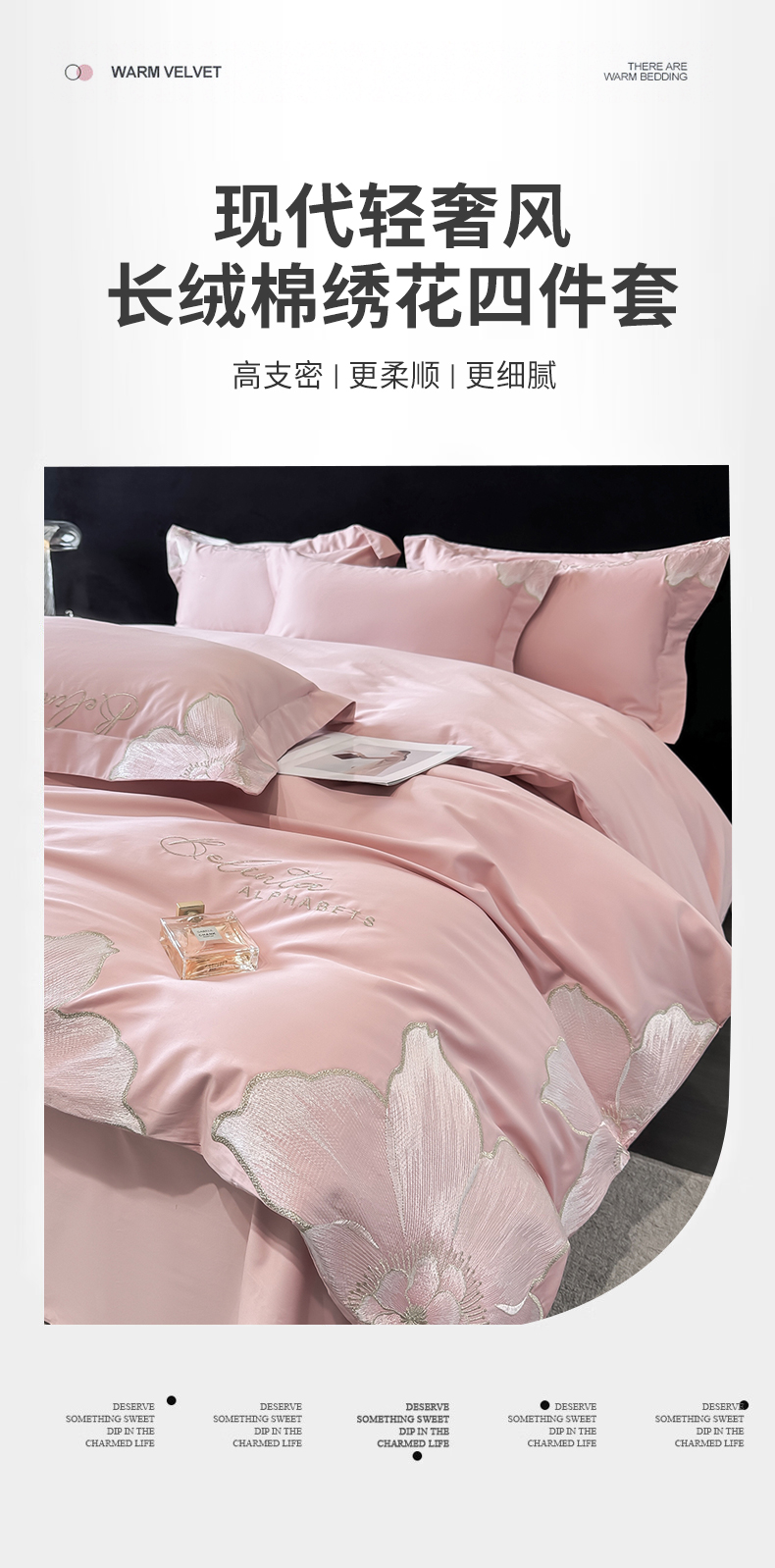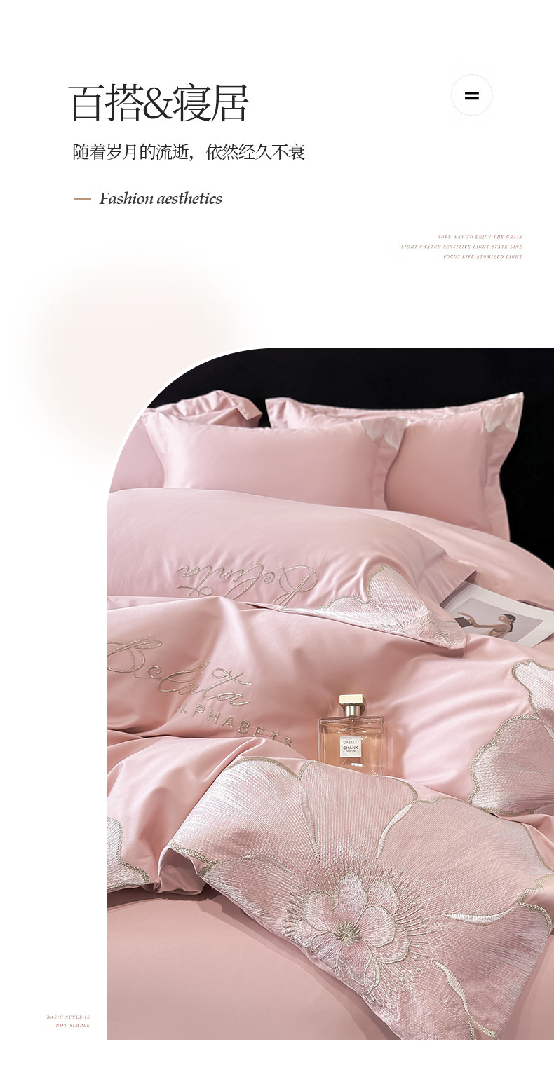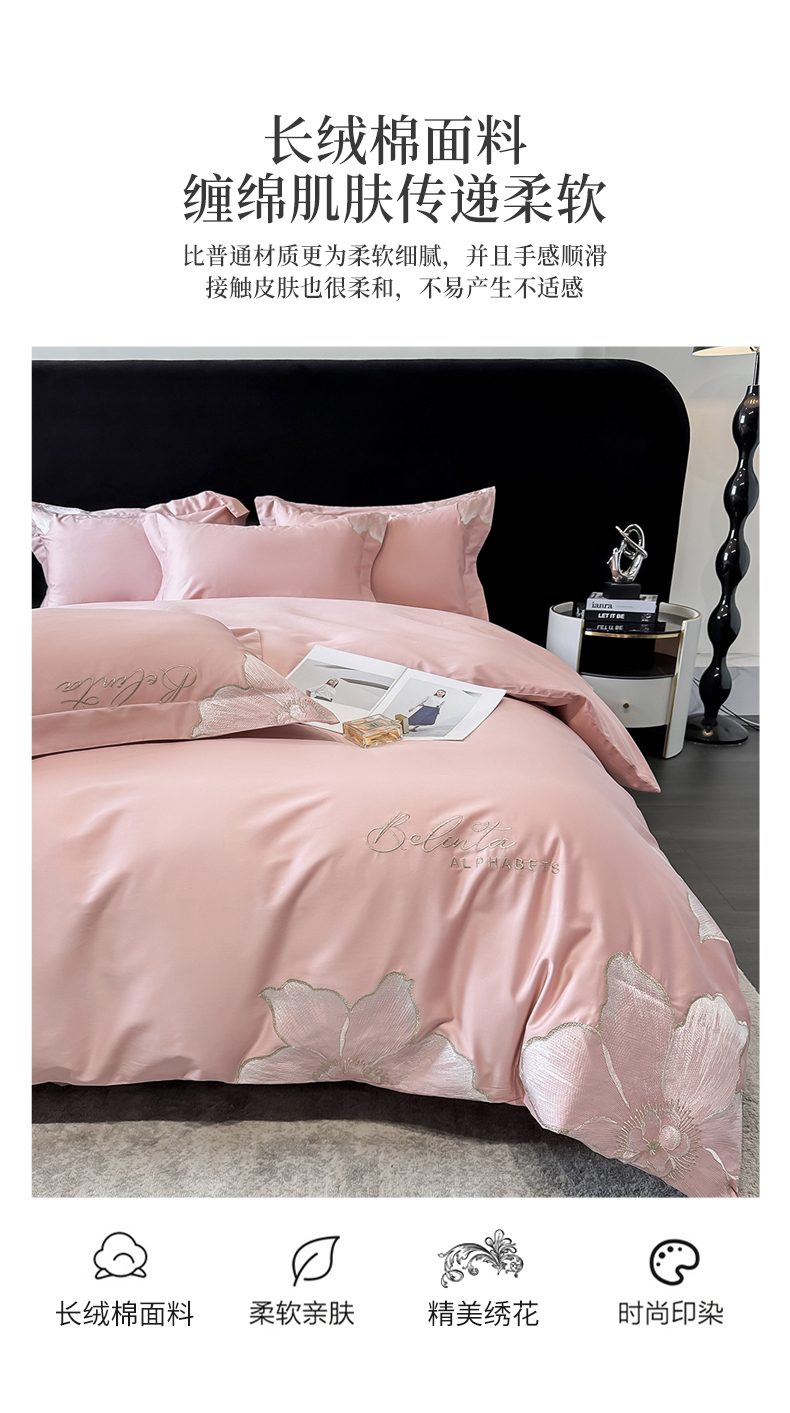 当前位置: 91家纺网 > 商品网购 > 床品套件 > 四件套 > 长绒棉四件套 > 宅家居 2024新款莫奈花园系列-轻奢小香风双面纯棉刺绣长绒棉四件套 莫奈花园-樱花粉