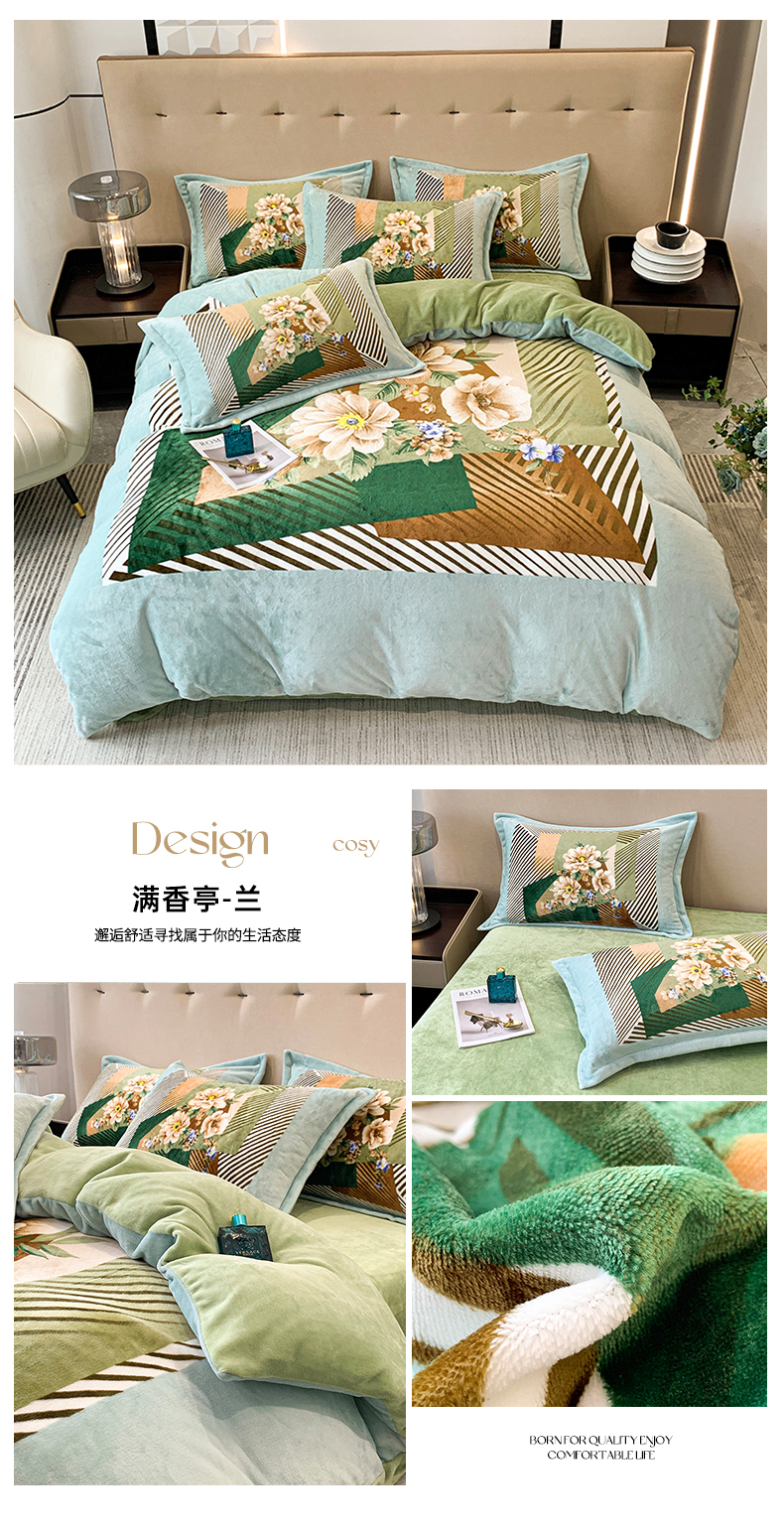 商品名称:喜梦缘 2025新款大版花卉牛奶绒四件套 满香亭-兰