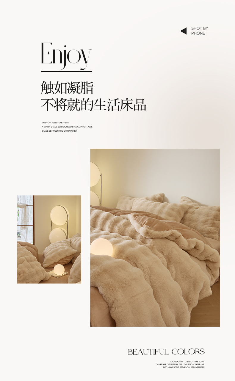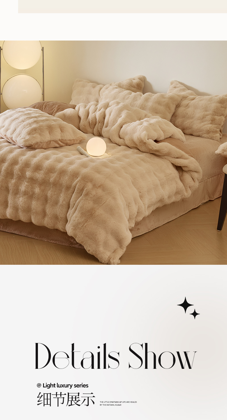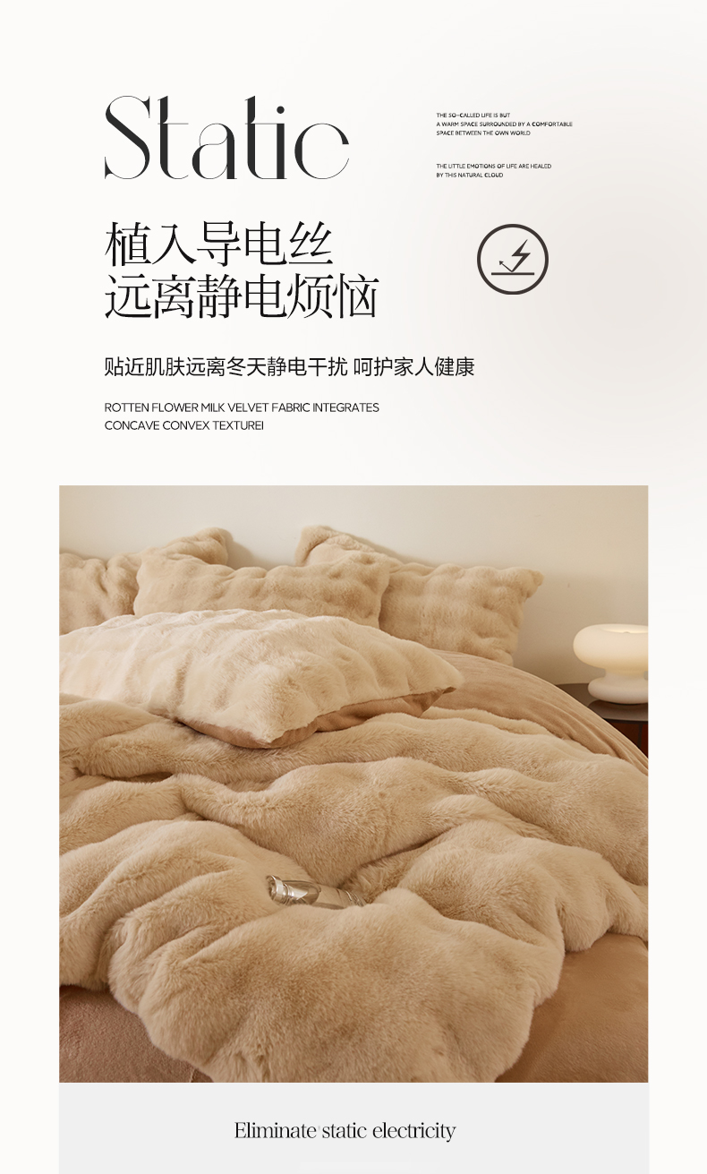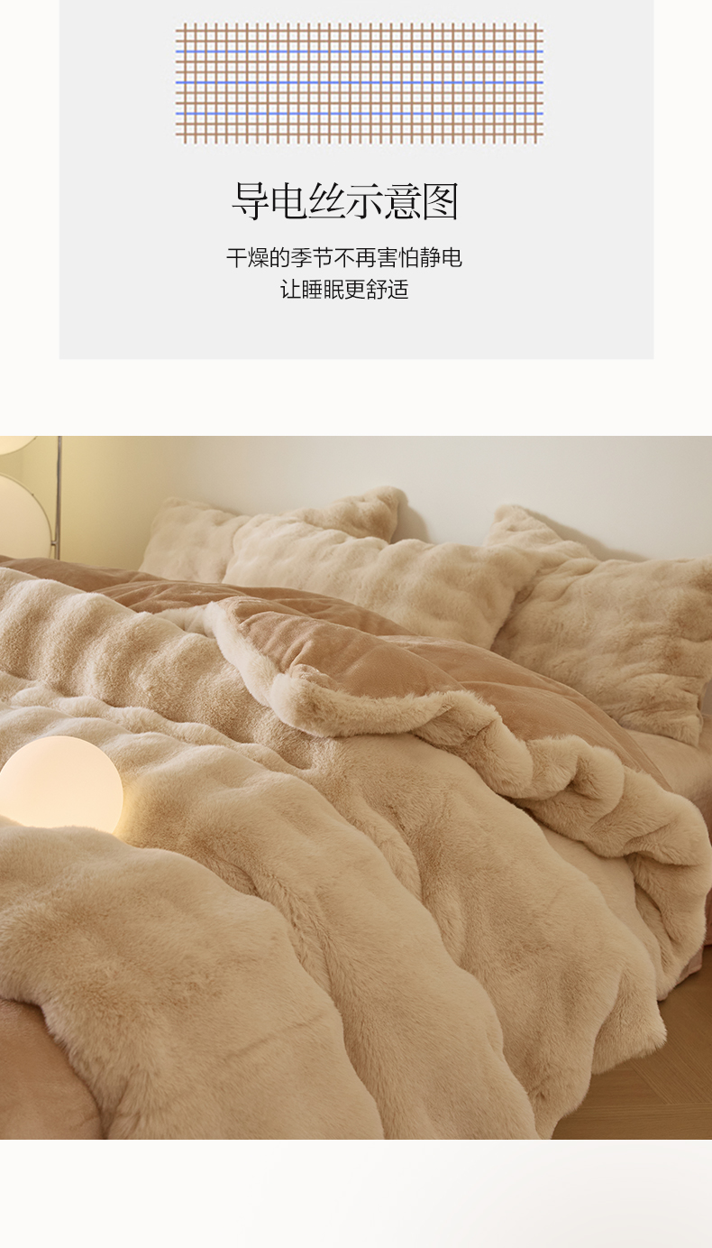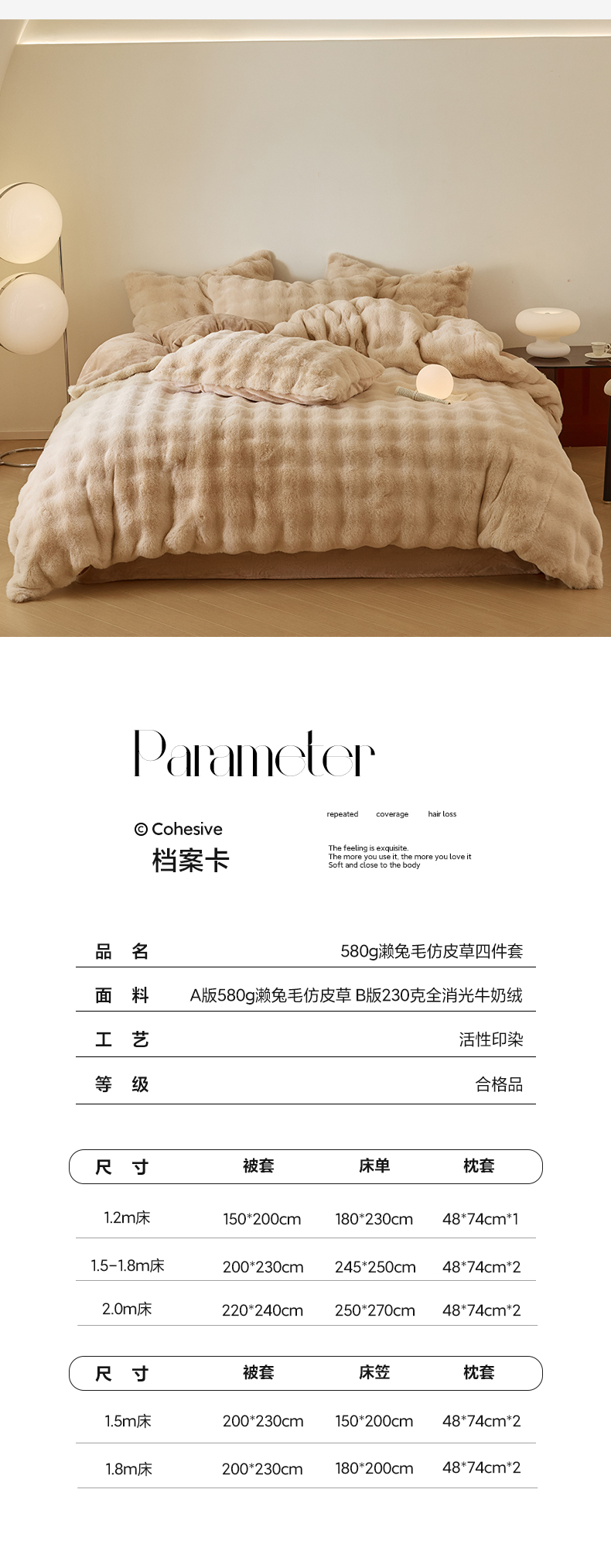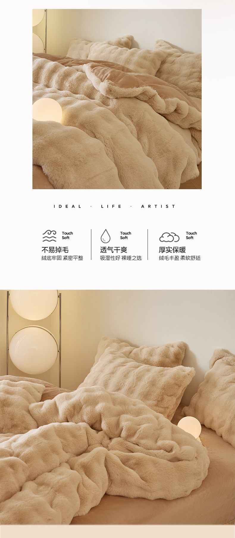 当前位置: 91家纺网 > 商品网购 > 床品套件 > 四件套 > 牛奶绒四件套 > 铠畅家纺 2024新款直播爆款高端A类獭兔毛立体剪花牛奶绒四件套 纯色大泡泡卡其