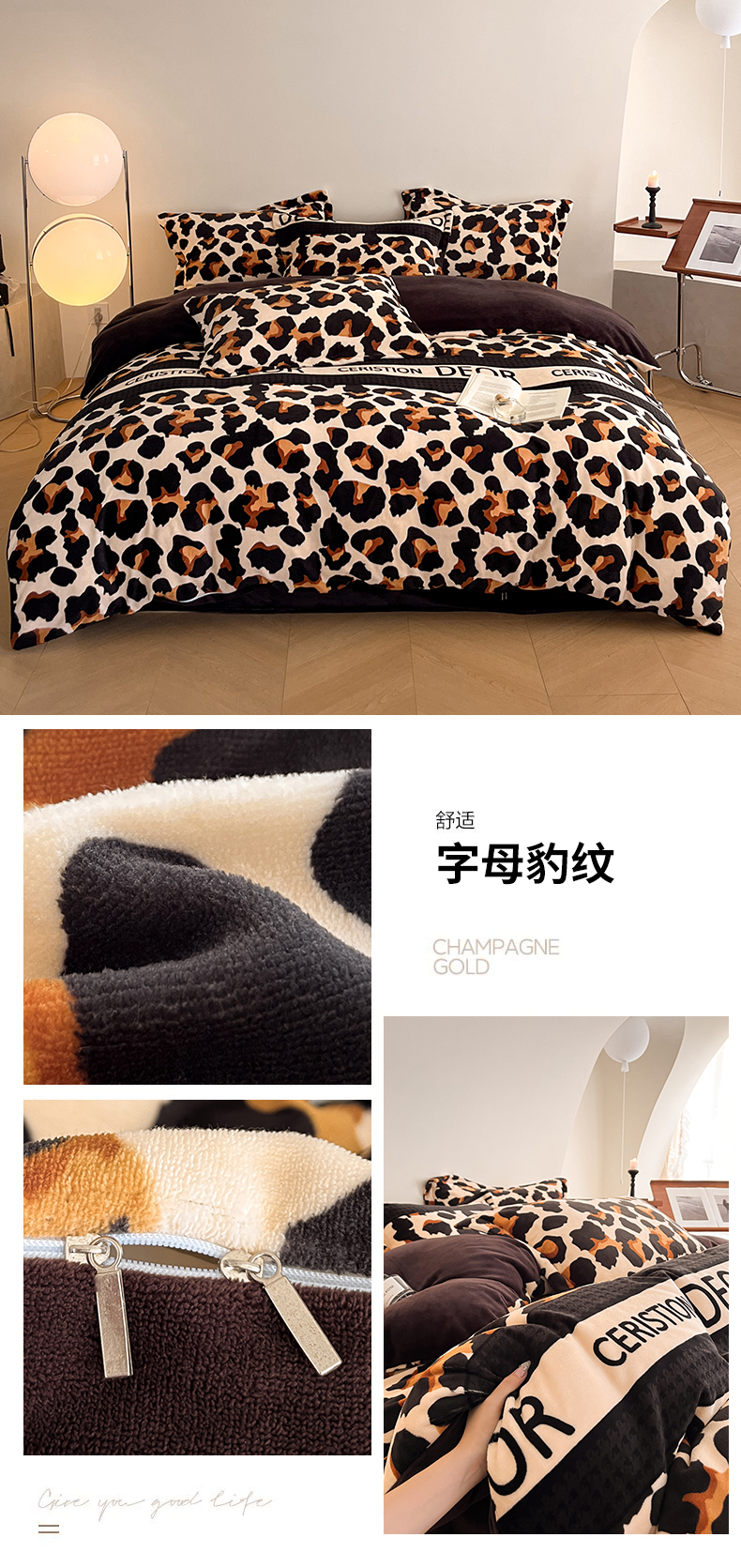 商品名称:启程家纺 2024新款A类牛奶绒轻奢大牌风四件套 字母豹纹