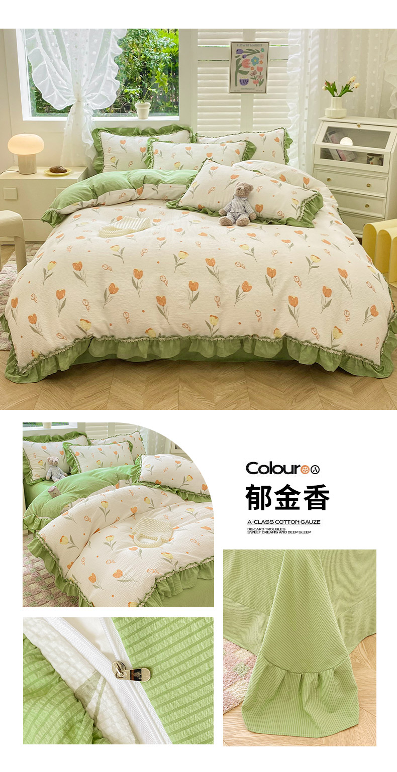 同田家纺 2024新款泡泡棉印花蕾丝工艺四件套 郁金香