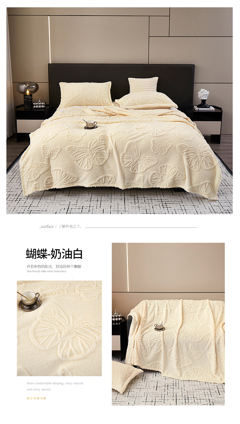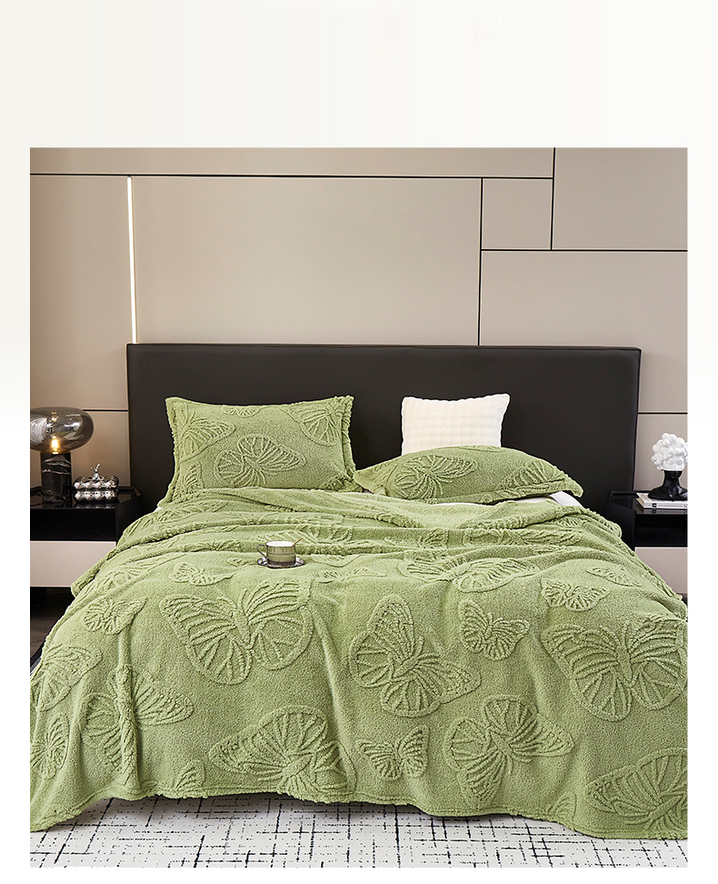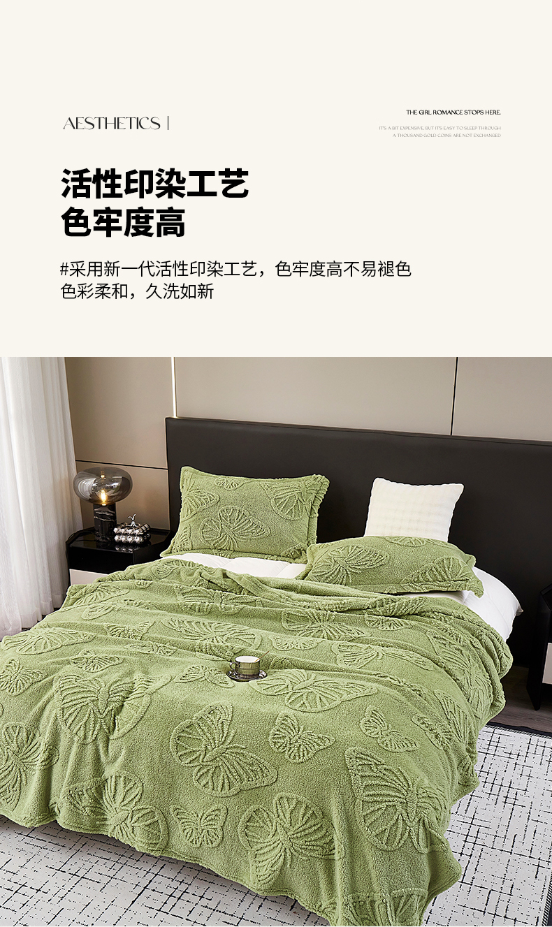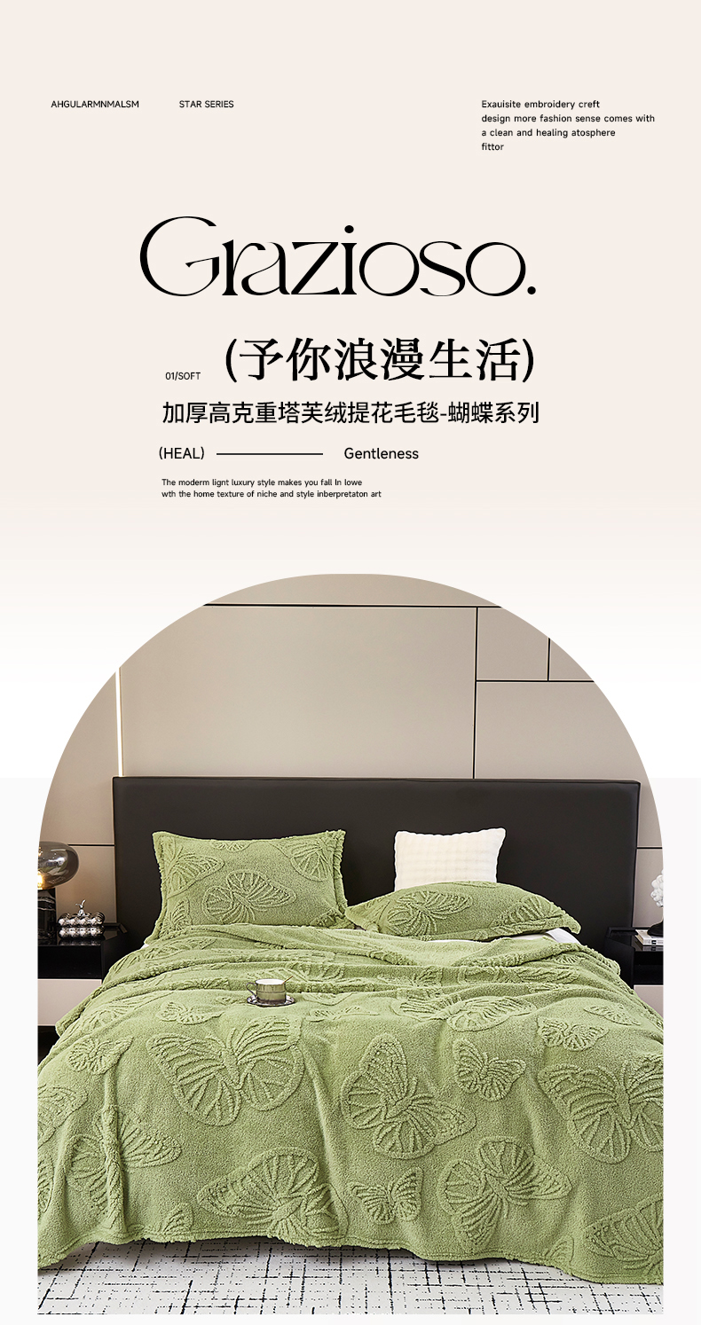 商品名称:坦客毯业 2025新款加厚高克重塔芙绒提花毛毯-蝴蝶系列 蝴蝶-抹茶绿