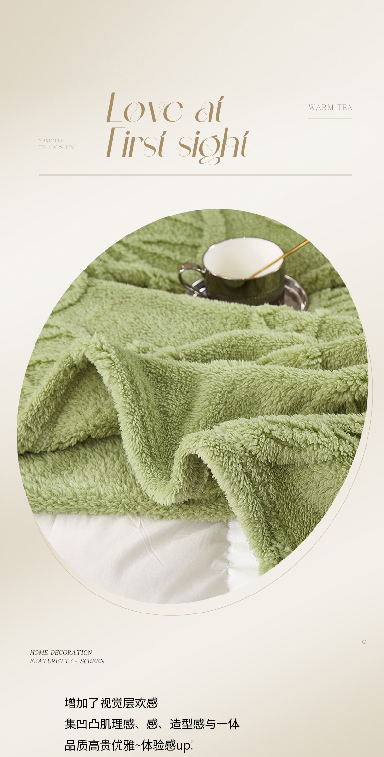 坦客毯业 2025新款加厚高克重塔芙绒提花毛毯-蝴蝶系列 蝴蝶-抹茶绿