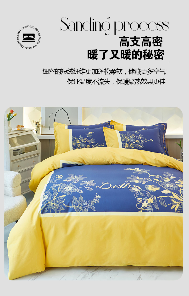 商品名称:雲归梦 2024新款加厚全棉生态磨毛大版四件套 天籁之音 黄