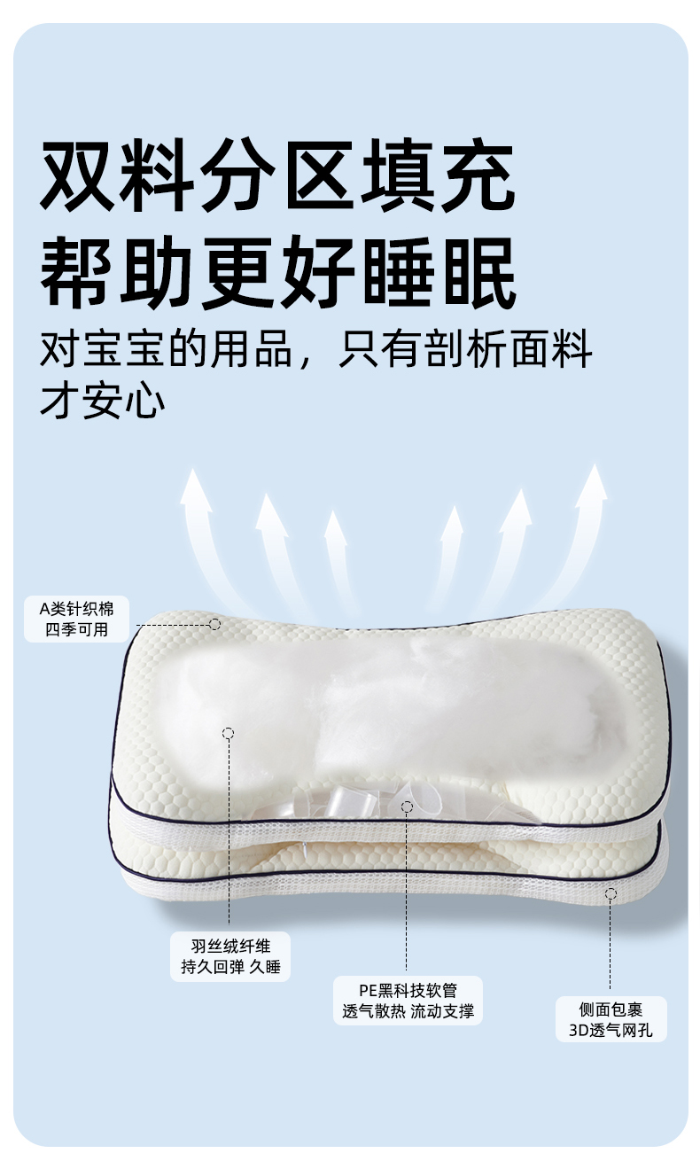 当前位置: 91家纺网 > 商品网购 > 枕头/枕芯/保健枕/颈椎枕 > 普通枕芯 > (总)织布人 2024新款枕芯A类儿童枕软管护脊成长枕头1-8岁婴幼儿童枕芯