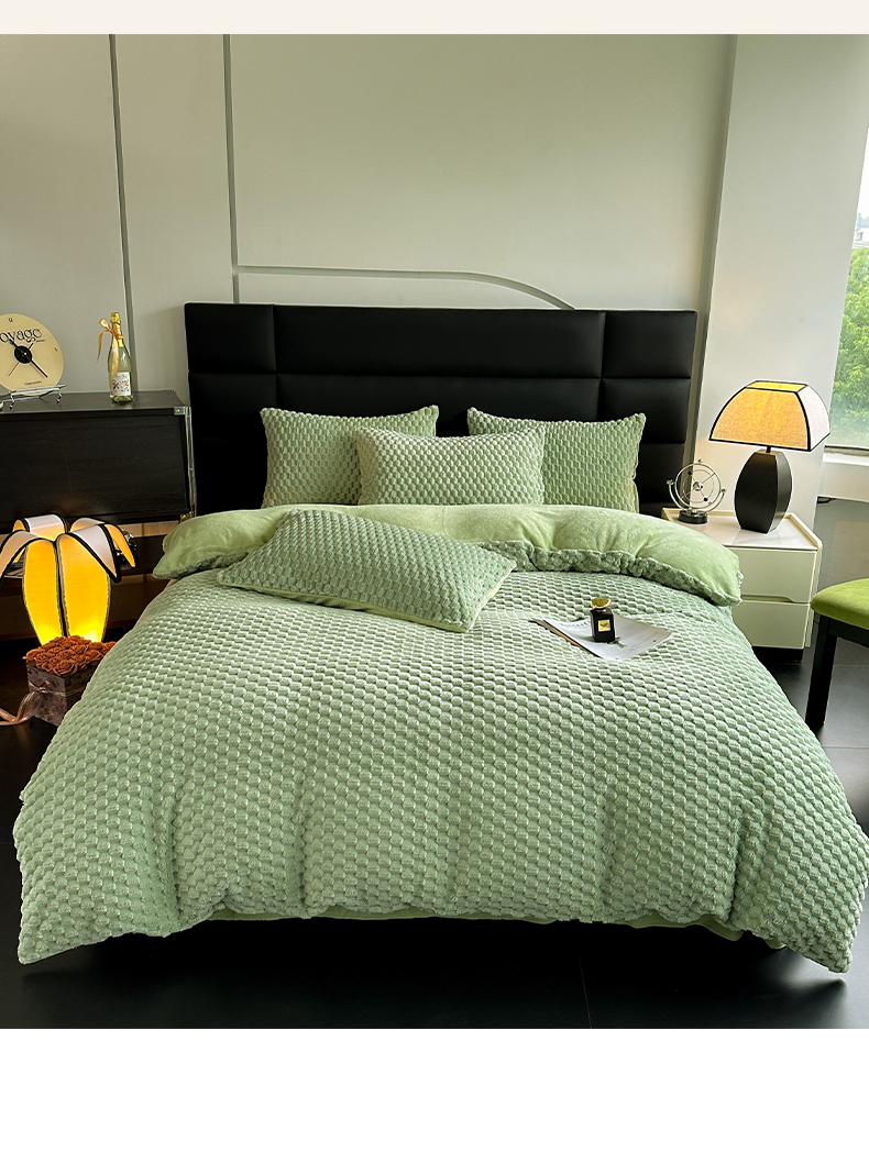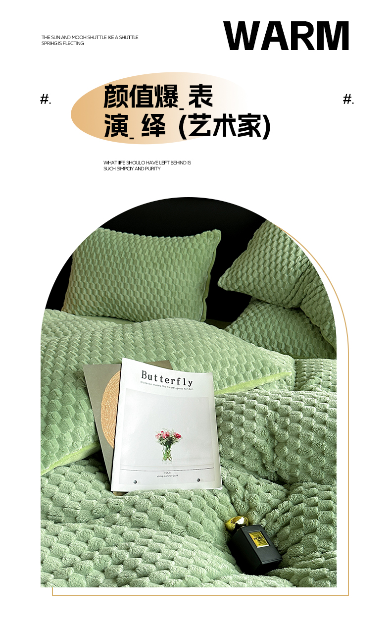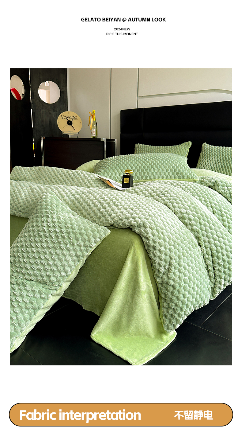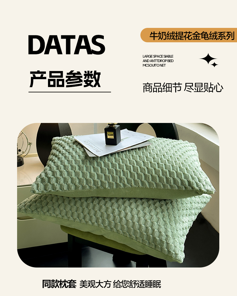当前位置: 91家纺网 > 商品网购 > 床品套件 > 四件套 > 牛奶绒四件套 > 2024新款牛奶绒提花金龟绒三件套四件套-场景二 金龟绒浅绿