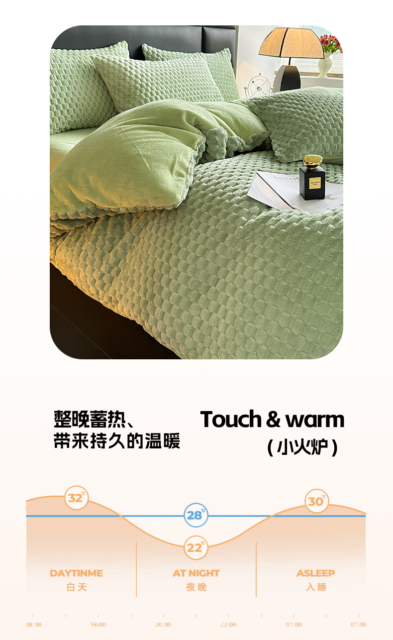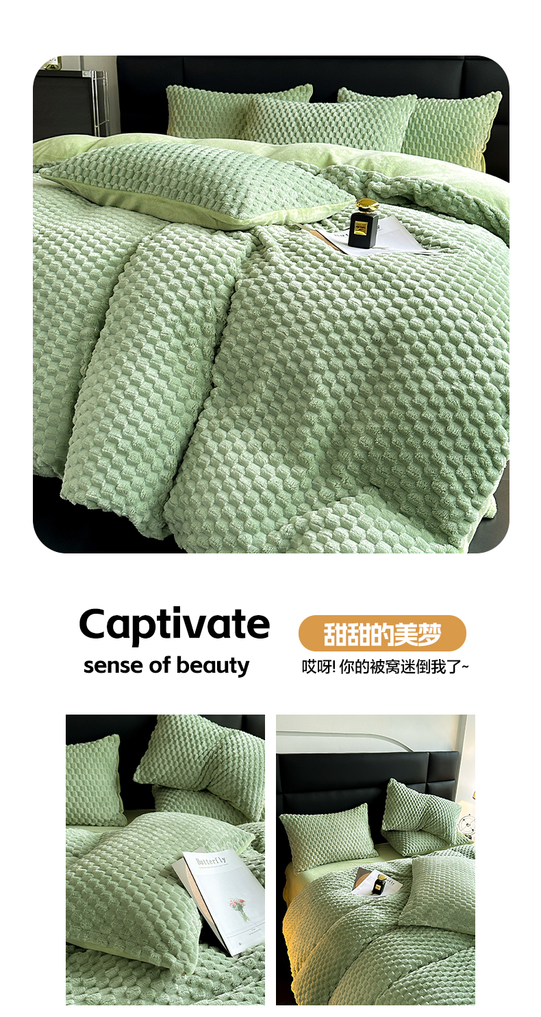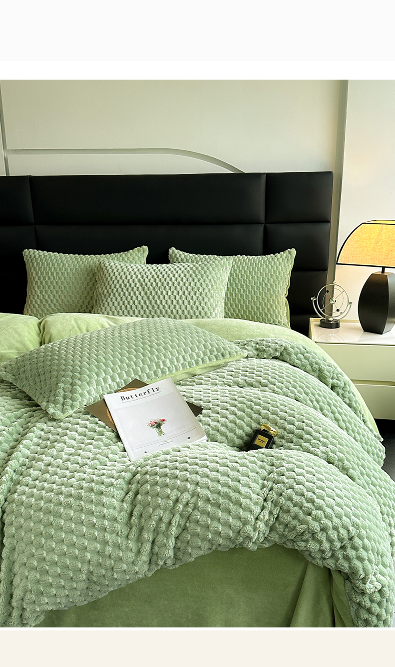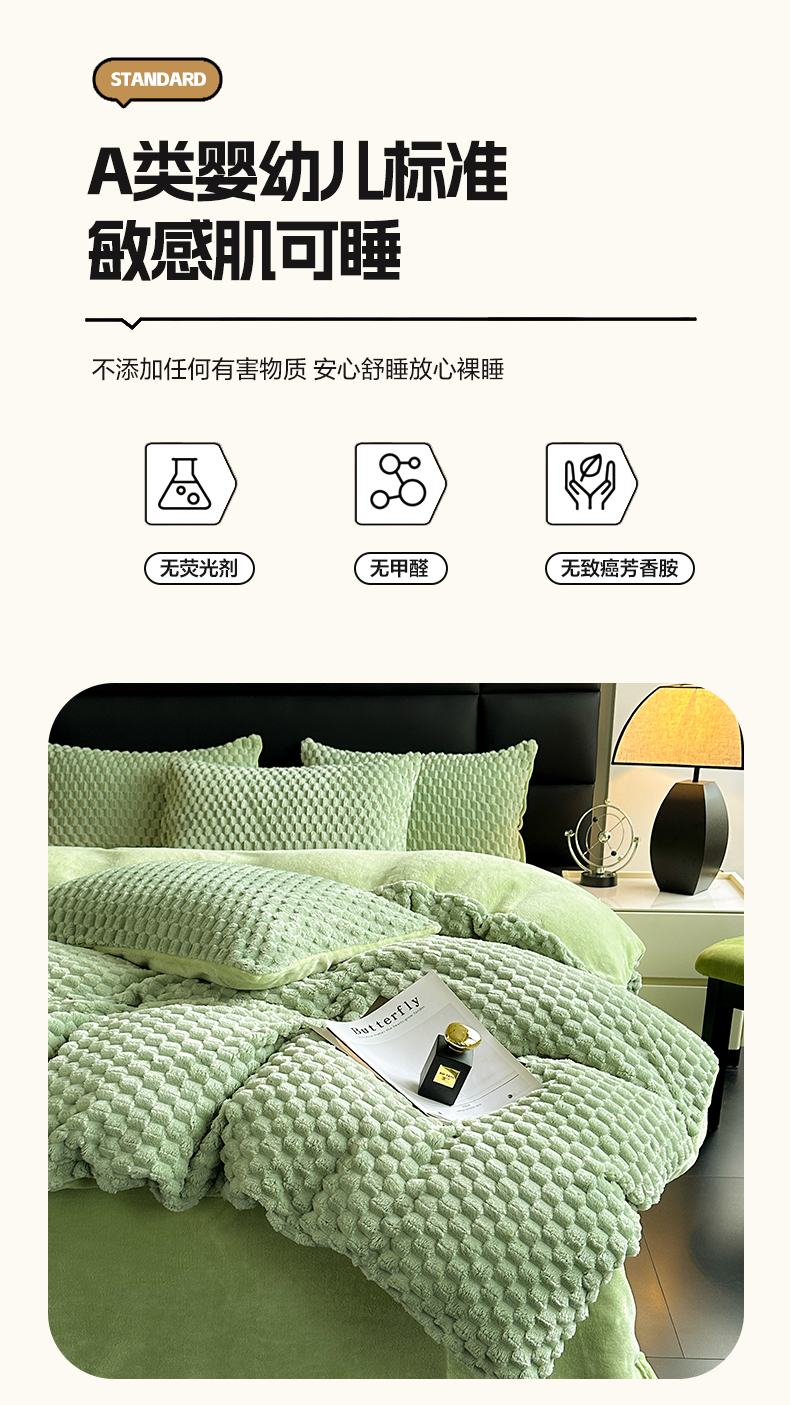 当前位置: 91家纺网 > 商品网购 > 床品套件 > 四件套 > 牛奶绒四件套 > 2024新款牛奶绒提花金龟绒三件套四件套-场景二 金龟绒浅绿