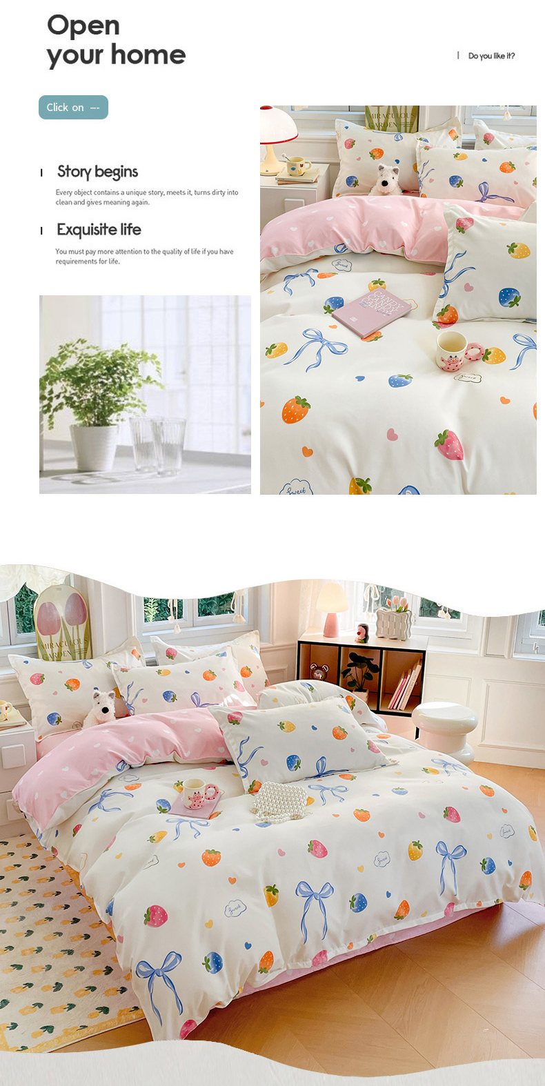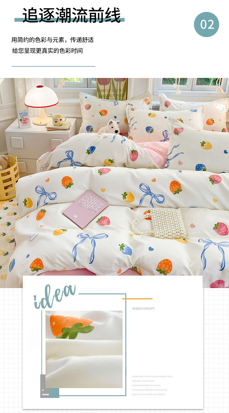 商品名称:世爵家纺 2025新款亲肤印花磨毛四件套 奶油草莓