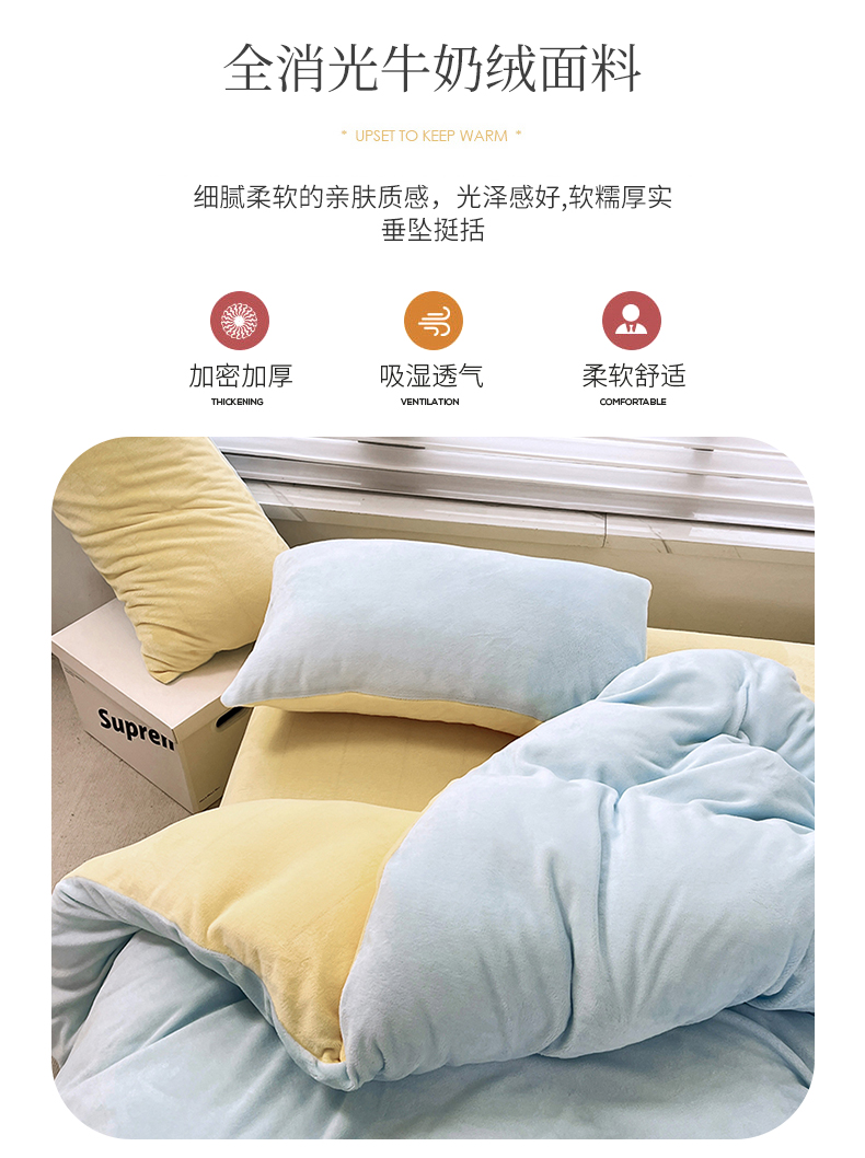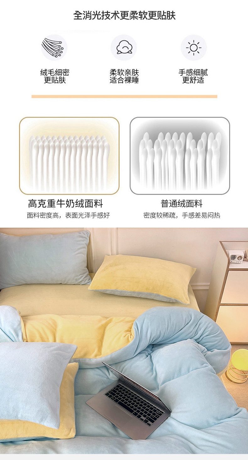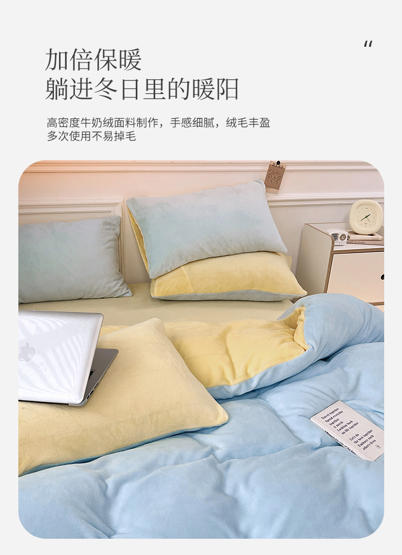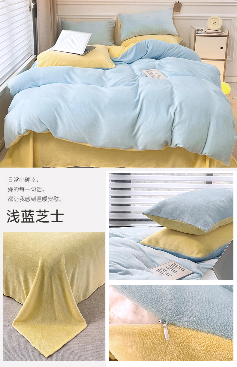 当前位置: 91家纺网 > 商品网购 > 床品套件 > 四件套 > 牛奶绒四件套 > 2024新款ins风小红书推荐高克重纯色双拼牛奶绒四件套 浅蓝芝士