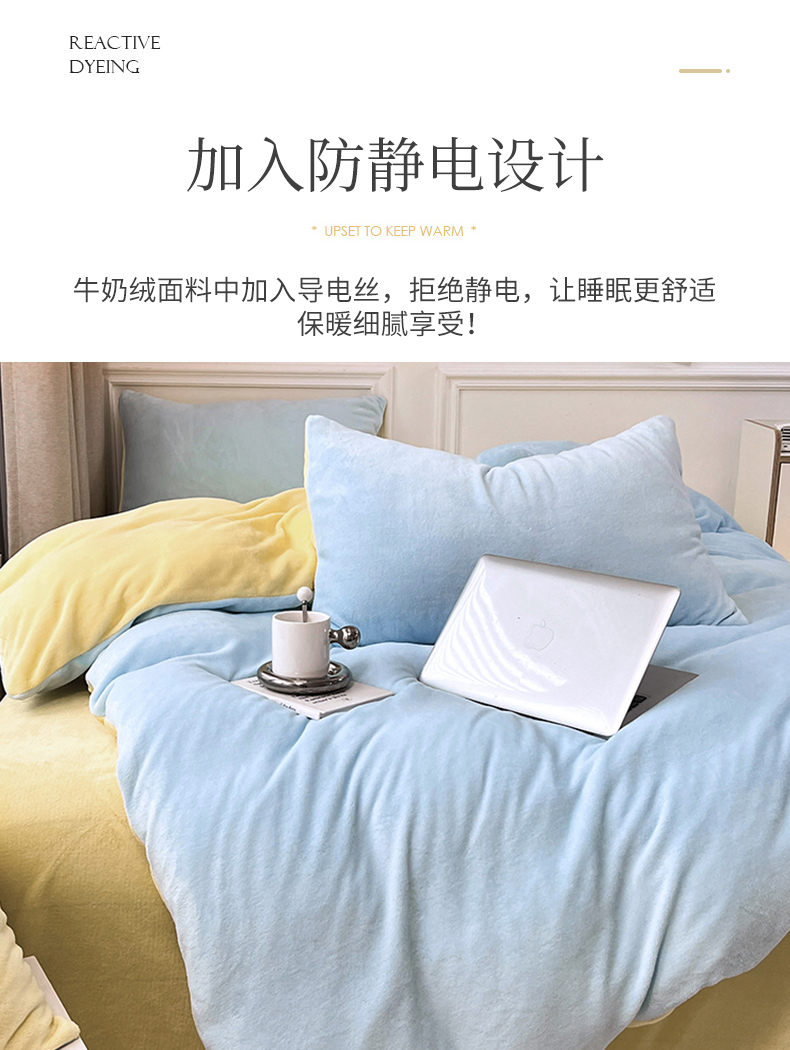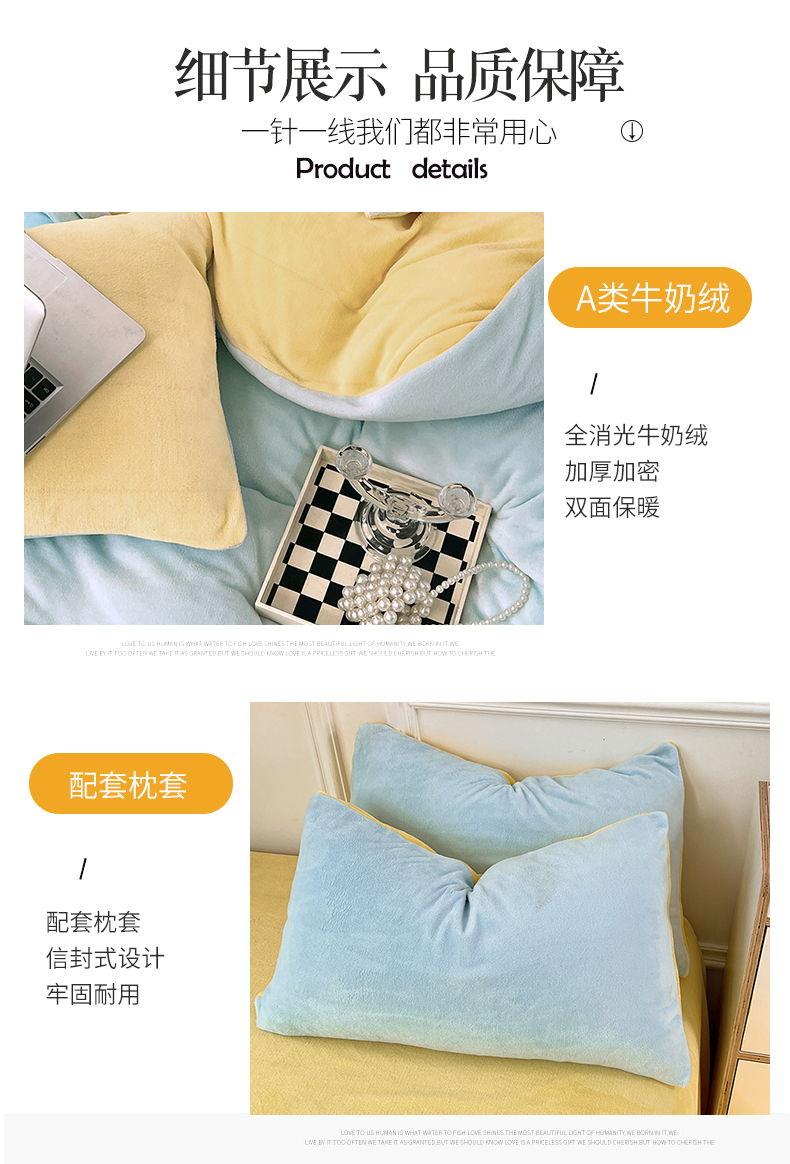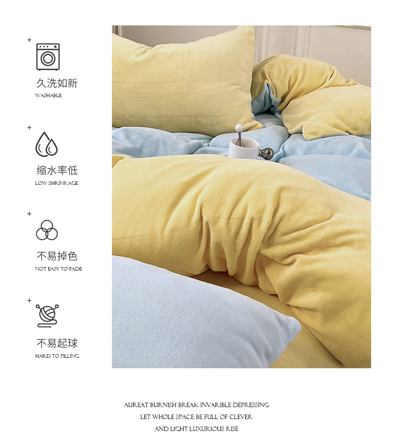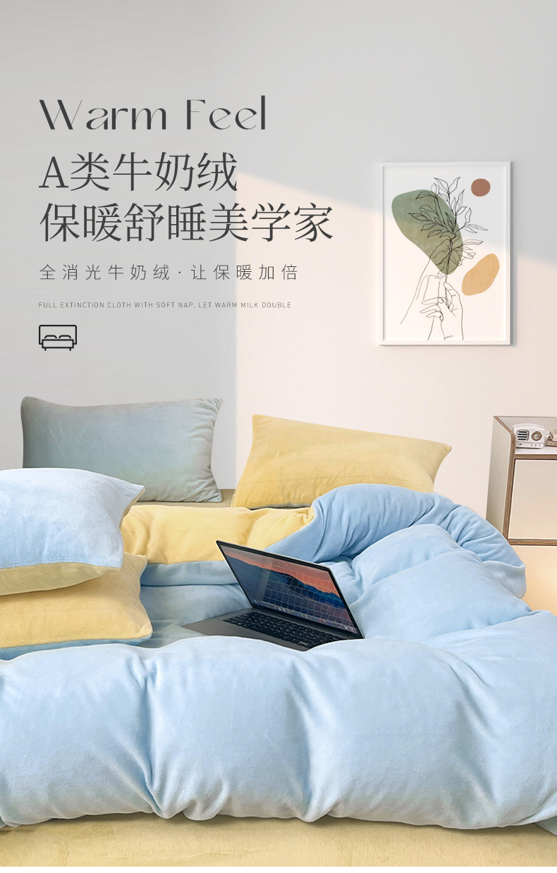 当前位置: 91家纺网 > 商品网购 > 床品套件 > 四件套 > 牛奶绒四件套 > 2024新款ins风小红书推荐高克重纯色双拼牛奶绒四件套 浅蓝芝士