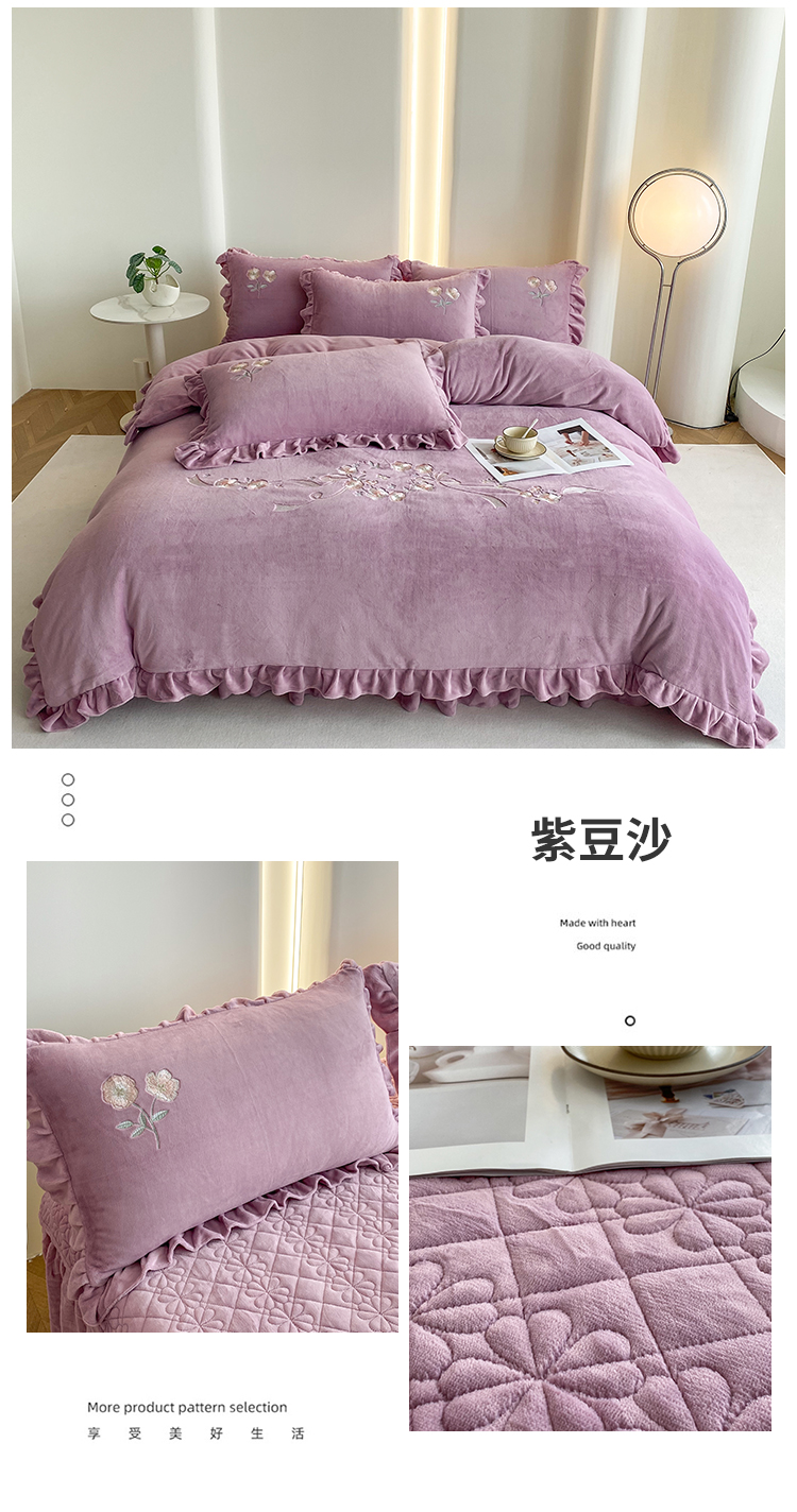 商品名称:美伦美焕 2024新款素锦绒床盖四件套 紫豆沙