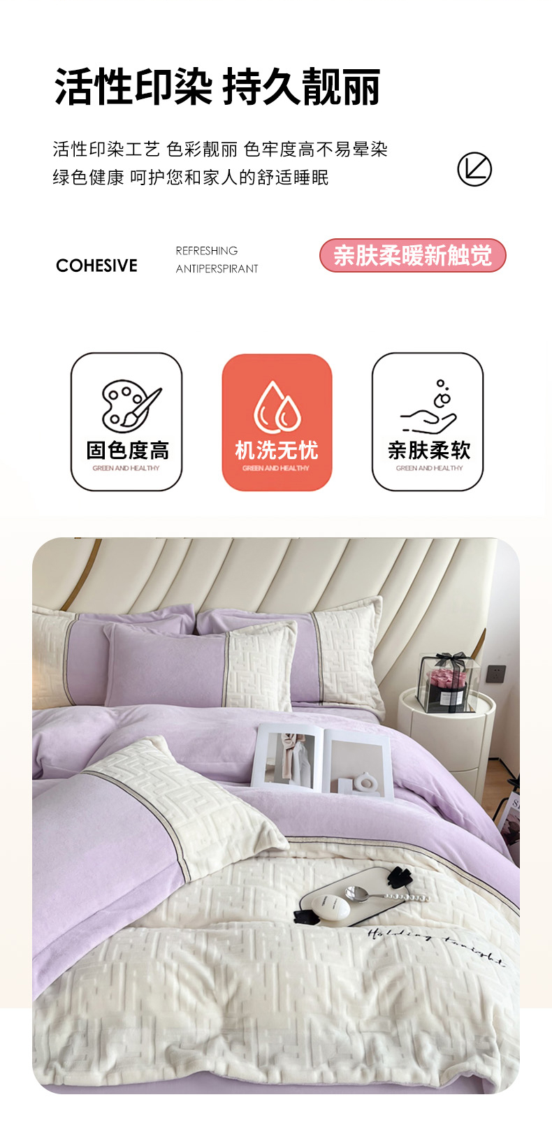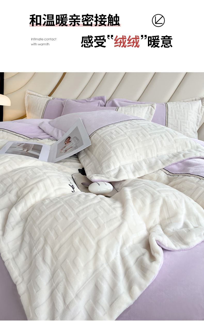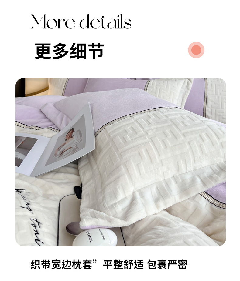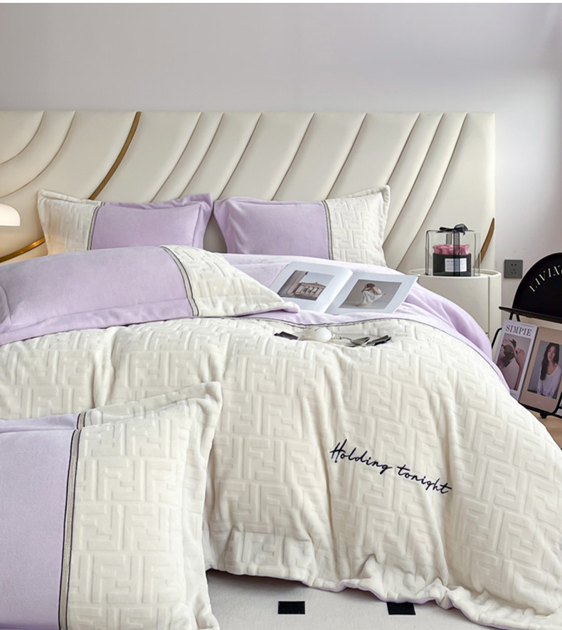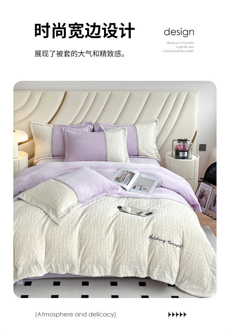 商品名称:2024秋冬新款时尚宽边立体剪花刺绣加厚牛奶绒四件套-赫莲娜系列 赫莲娜浅紫