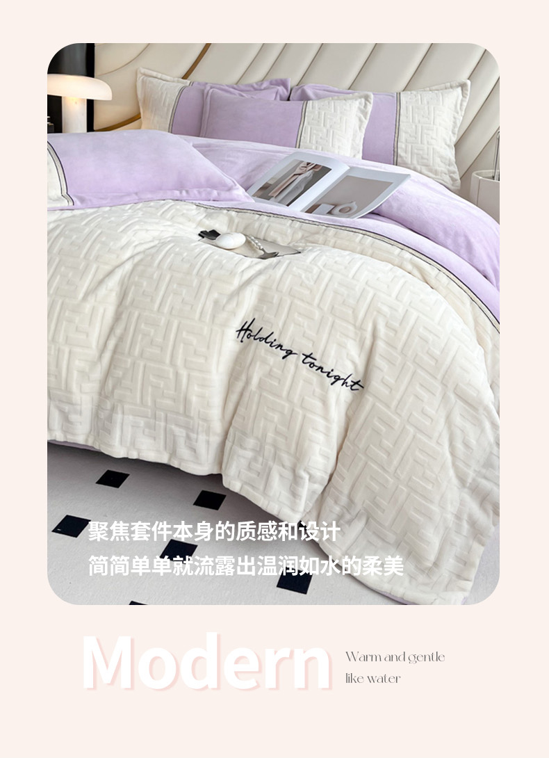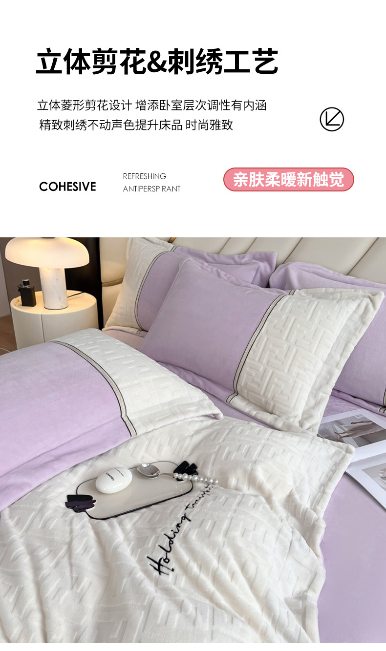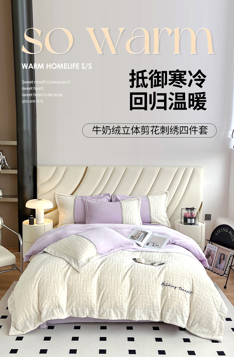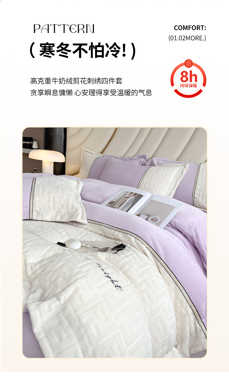2024秋冬新款时尚宽边立体剪花刺绣加厚牛奶绒四件套-赫莲娜系列 赫莲娜浅紫