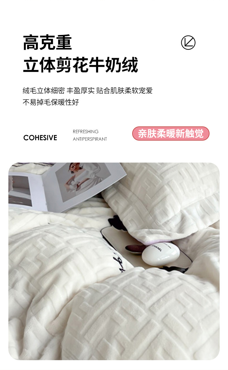 (总)凯美家居 2025新款A类雕花牛奶绒四件套-美拉德系列,温婉花颜,光影蝴蝶,小岛蔷薇 粉,小岛蔷薇 绿,雅致,芷岸澜庭