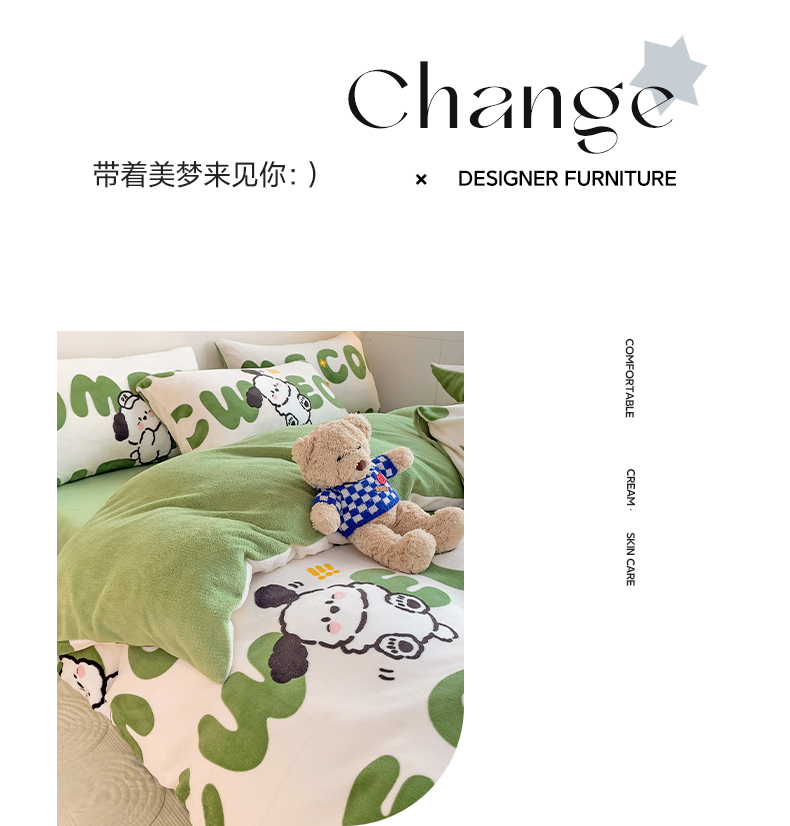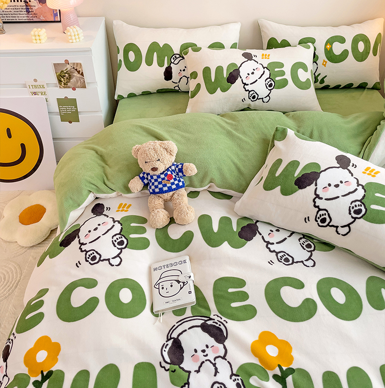 当前位置: 91家纺网 > 商品网购 > 床品套件 > 四件套 > 牛奶绒四件套 > 西引力 2024新款加厚小清新牛奶绒四件套床单款床笠款单被套爆款 欢乐萌宠