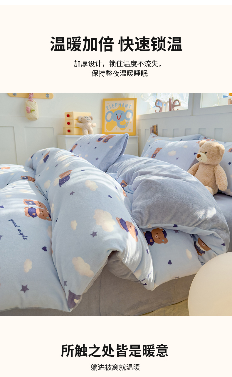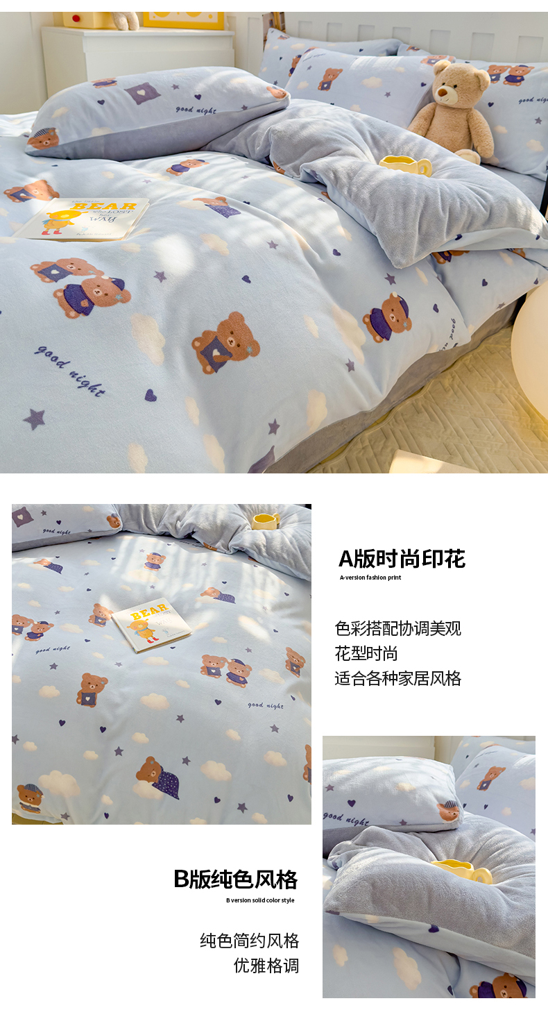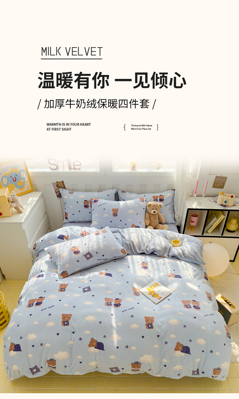当前位置: 91家纺网 > 商品网购 > 床品套件 > 四件套 > 牛奶绒四件套 > 枋梢家纺 2024新款加厚牛奶绒印花四件套 晚安熊