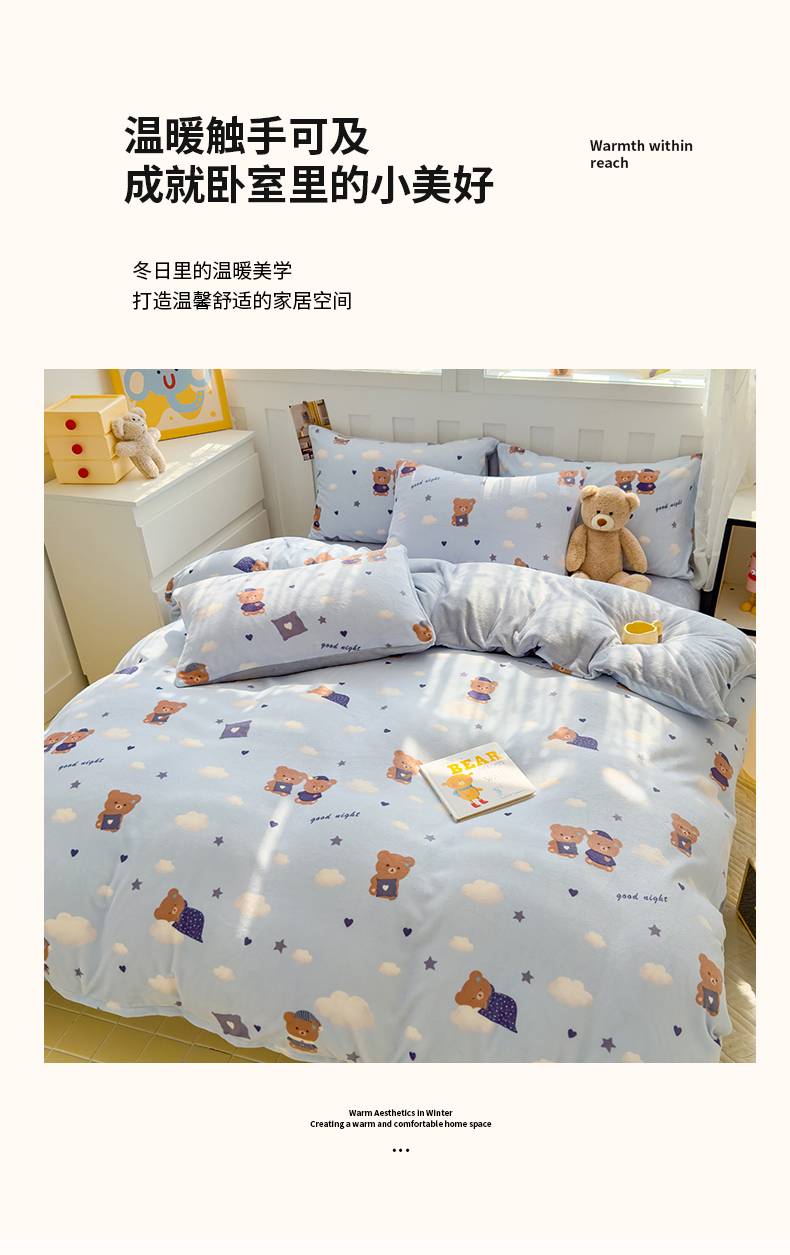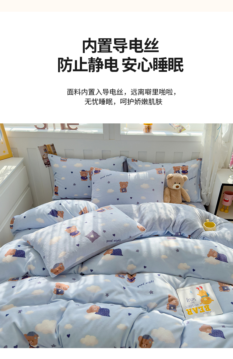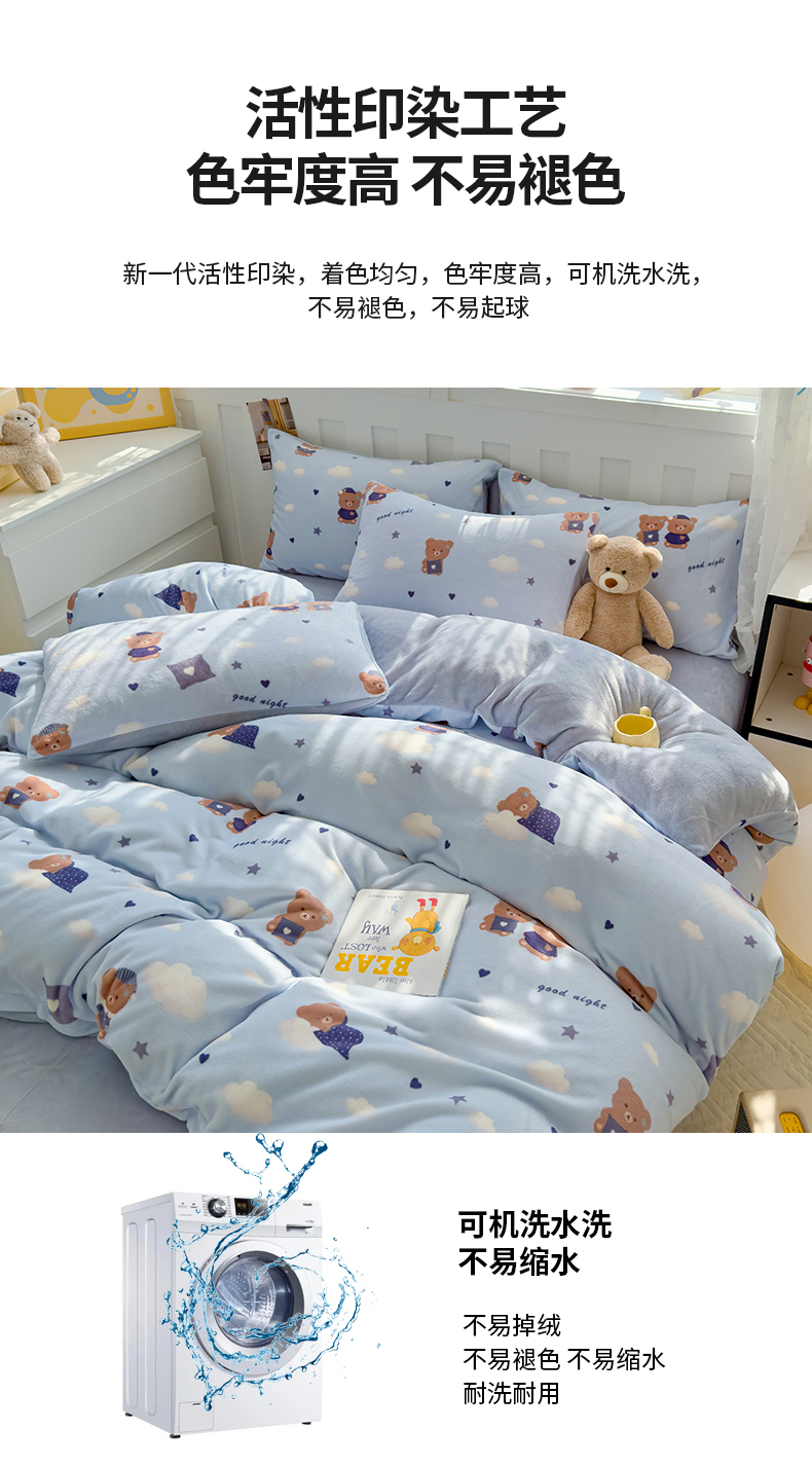 当前位置: 91家纺网 > 商品网购 > 床品套件 > 四件套 > 牛奶绒四件套 > 枋梢家纺 2024新款加厚牛奶绒印花四件套 晚安熊
