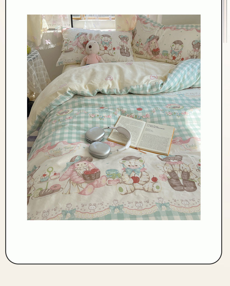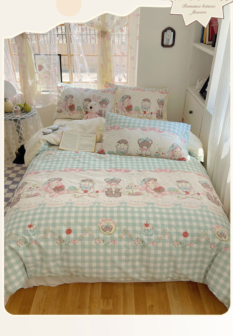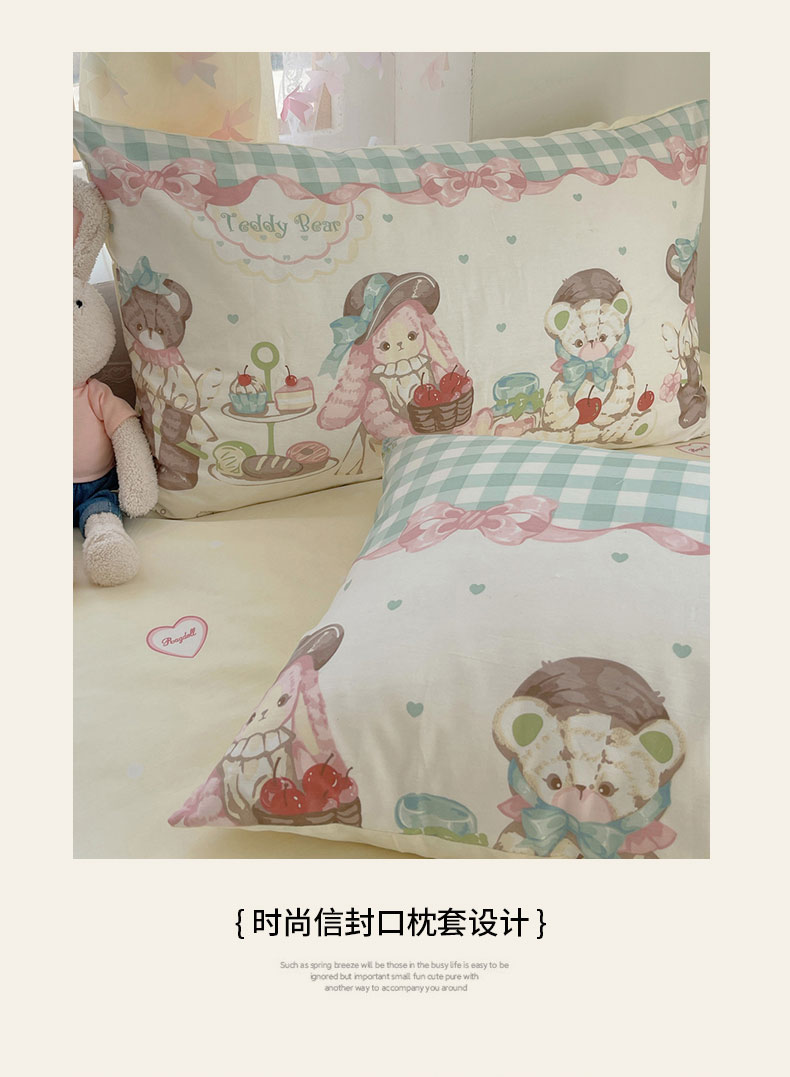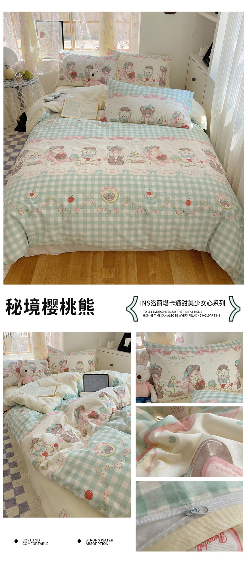 六巷胡同 2024新款40支全棉纯棉INS洛丽塔卡通甜美少女心系列四件套 秘境樱桃熊