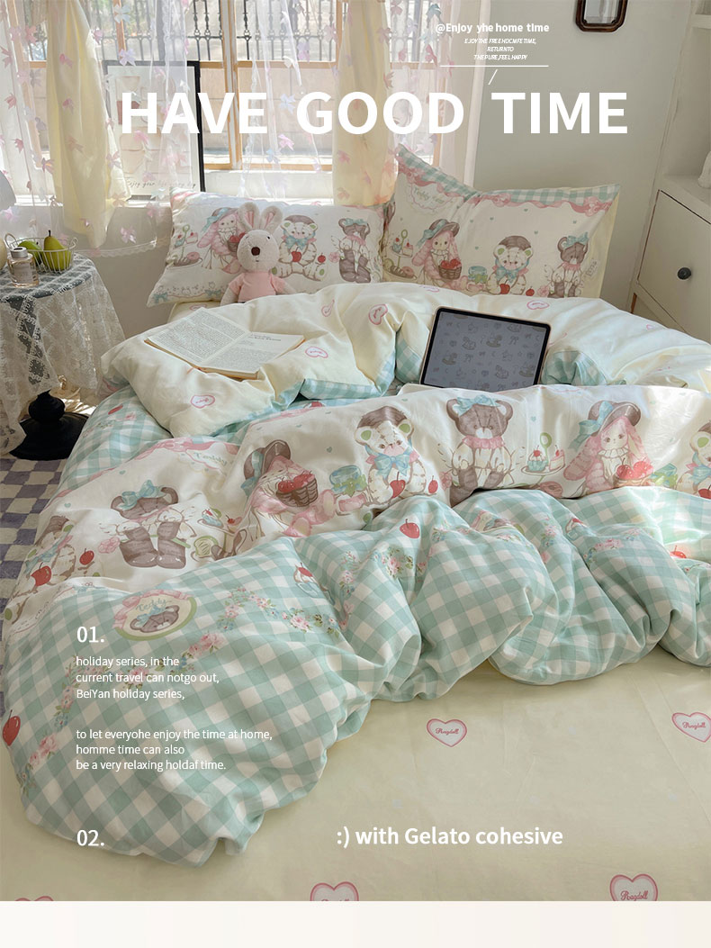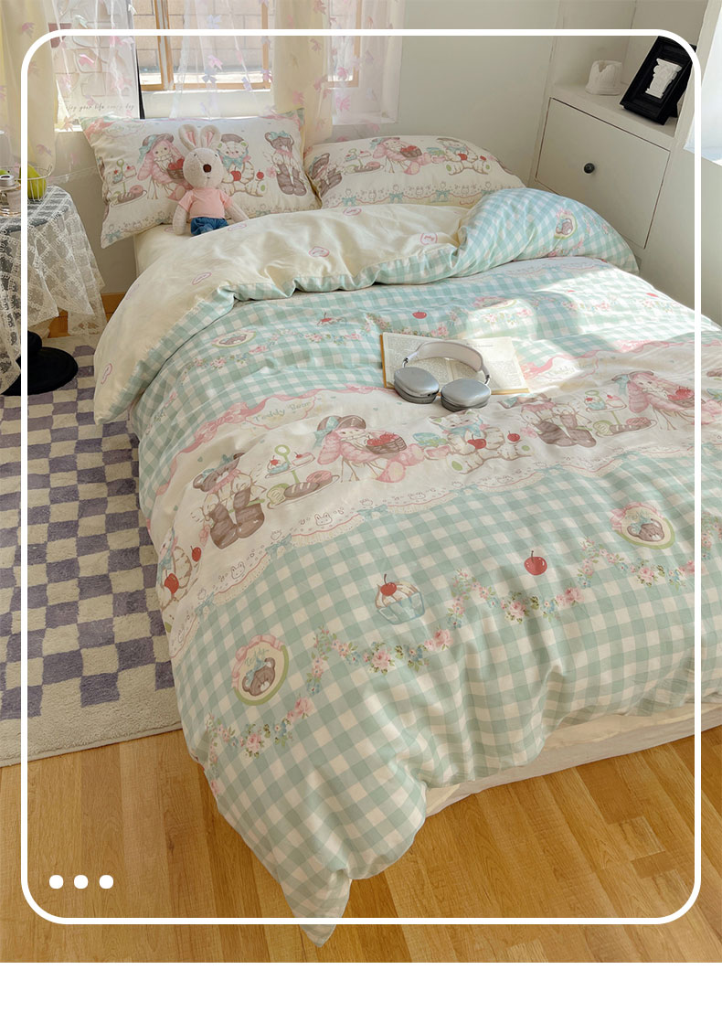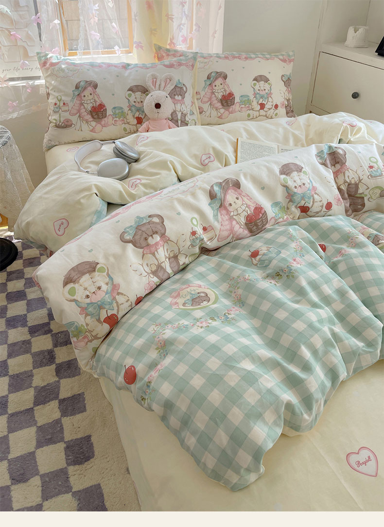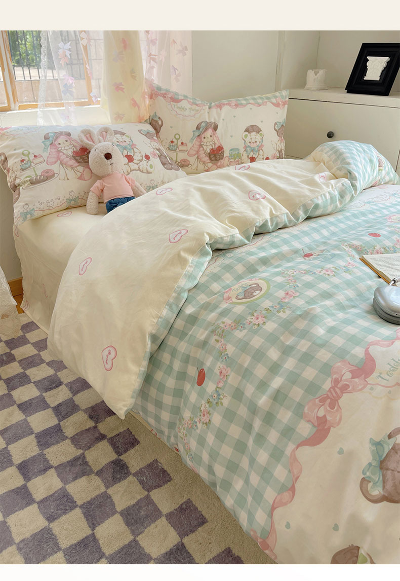 六巷胡同 2024新款40支全棉纯棉INS洛丽塔卡通甜美少女心系列四件套 秘境樱桃熊