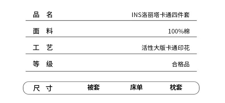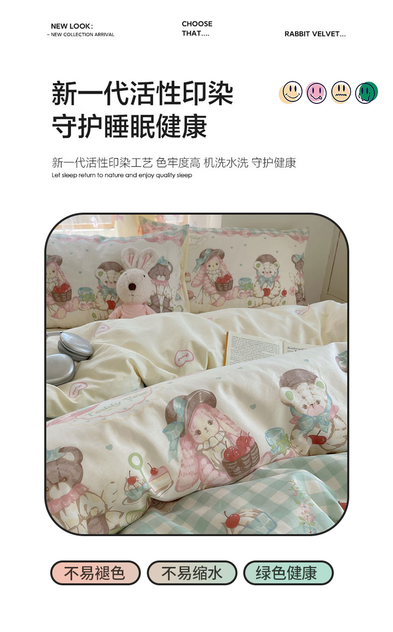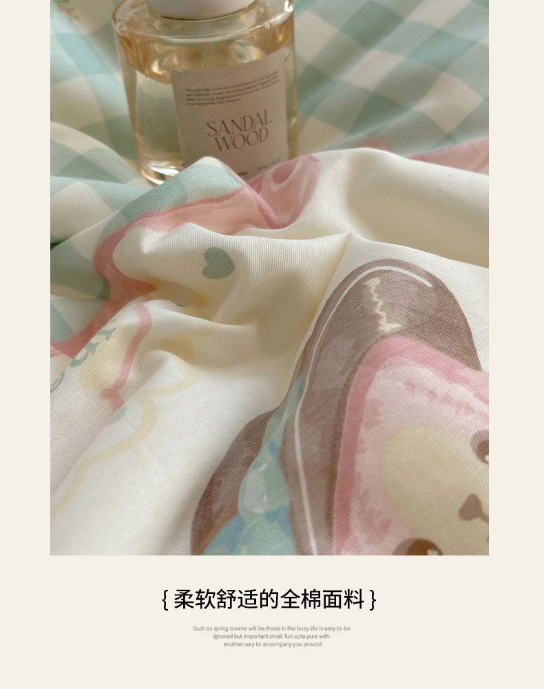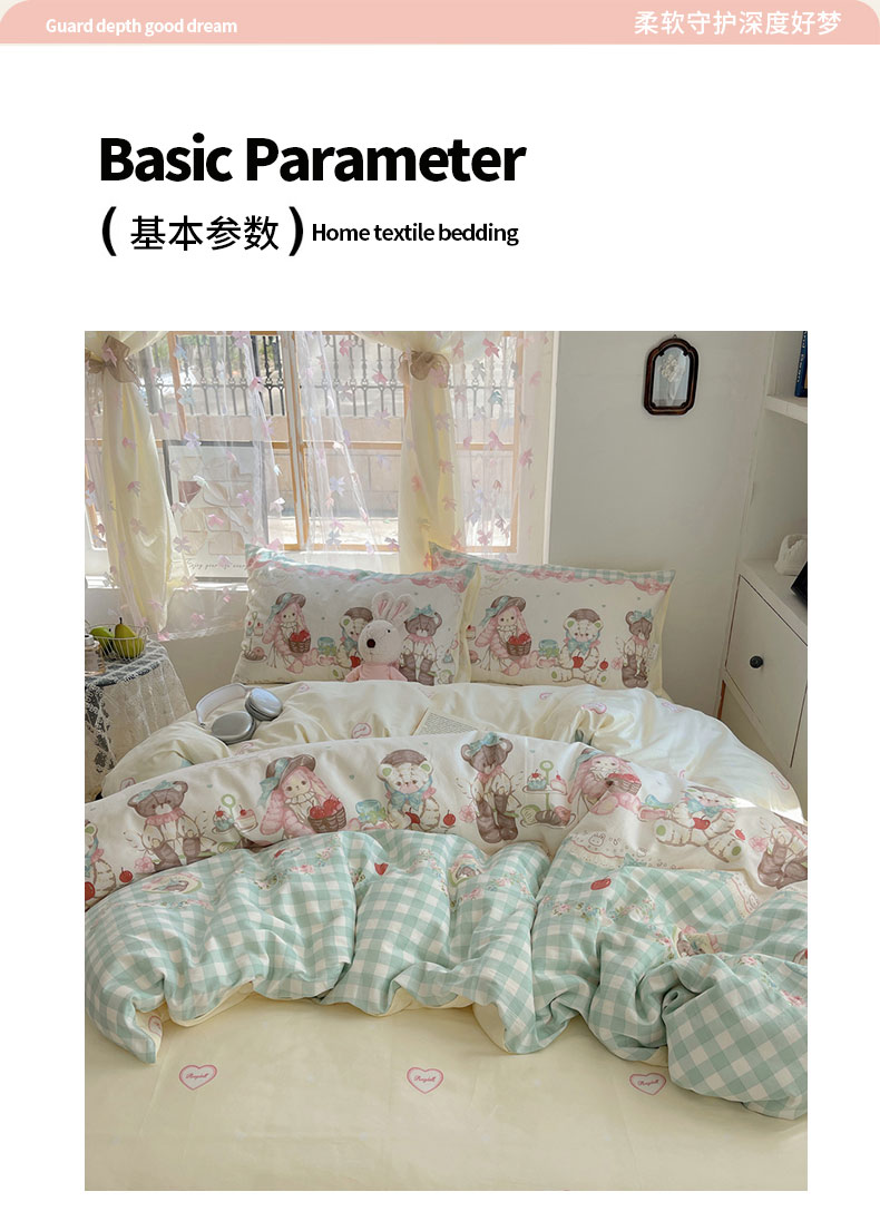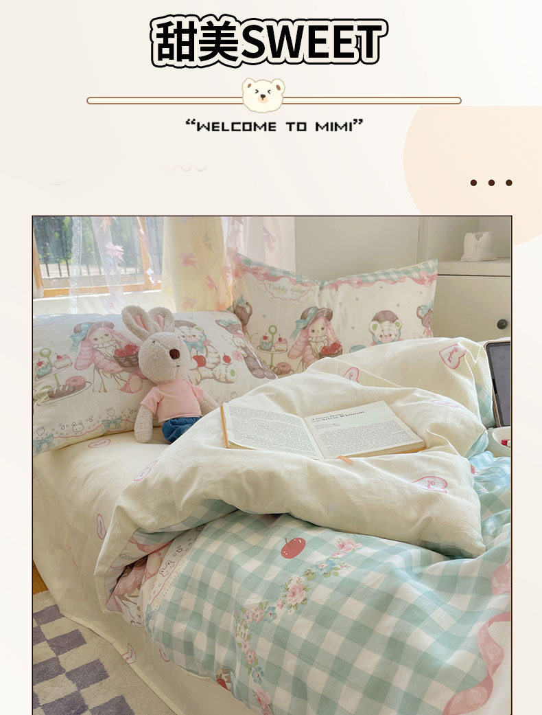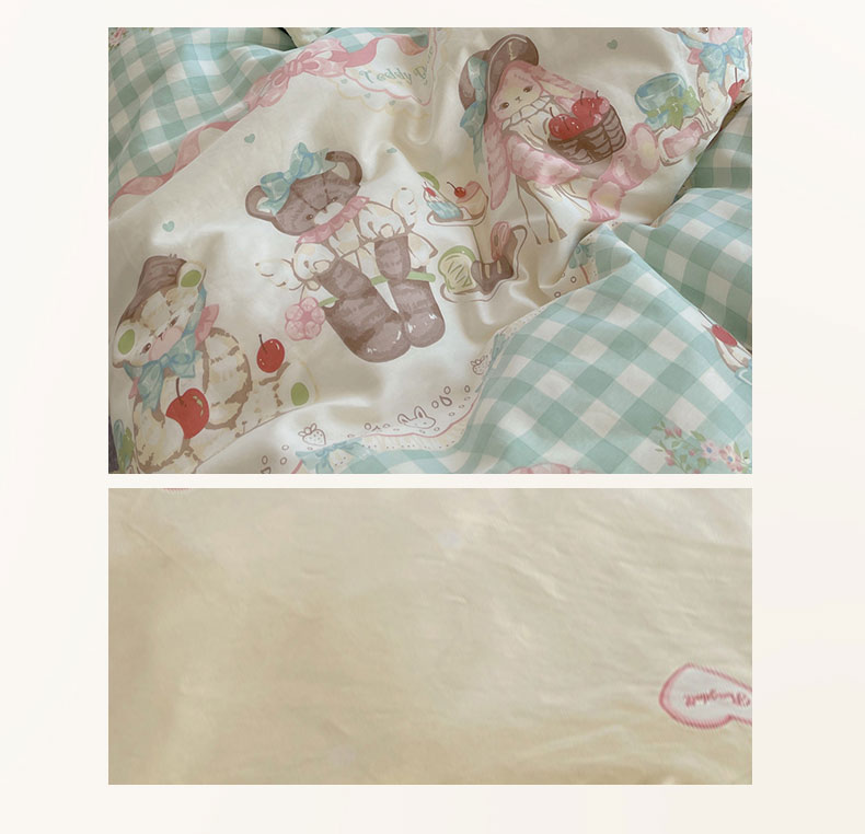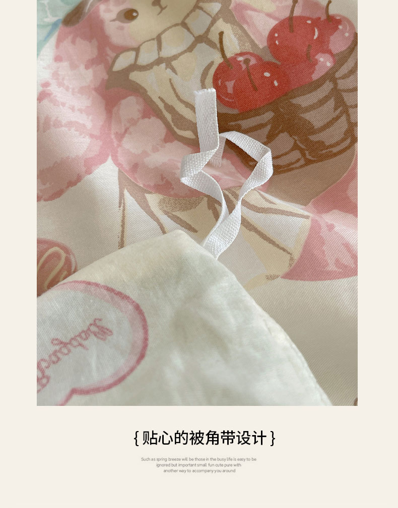 商品名称:六巷胡同 2024新款40支全棉纯棉INS洛丽塔卡通甜美少女心系列四件套 秘境樱桃熊
