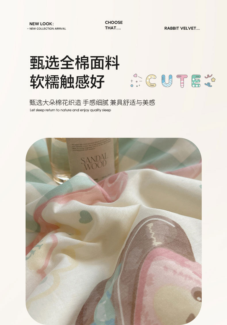 (总)六巷胡同 2025新款INS童趣可爱风卡通全棉四件套-第四系,彩虹甜筒猫,草莓害羞喵,粉格元气猫,咖格樱桃狗,蓝格嗨皮狗,圣诞麋鹿狗,仙人掌粉象,熊熊猫咪崽