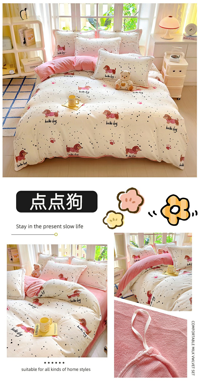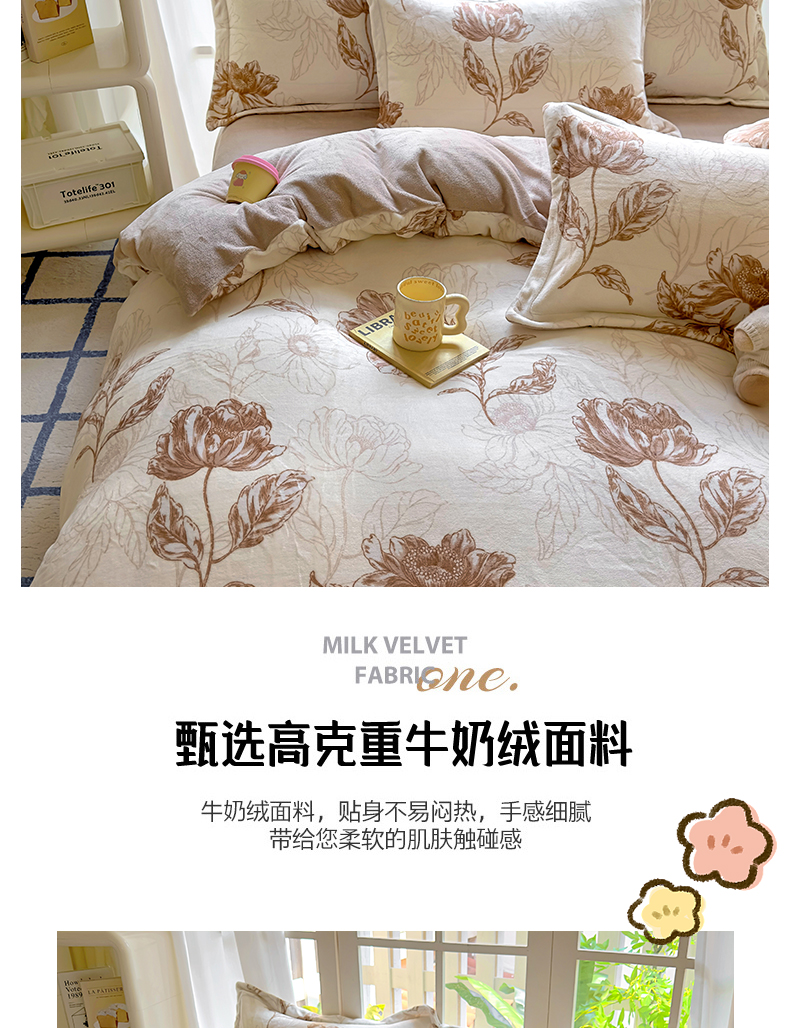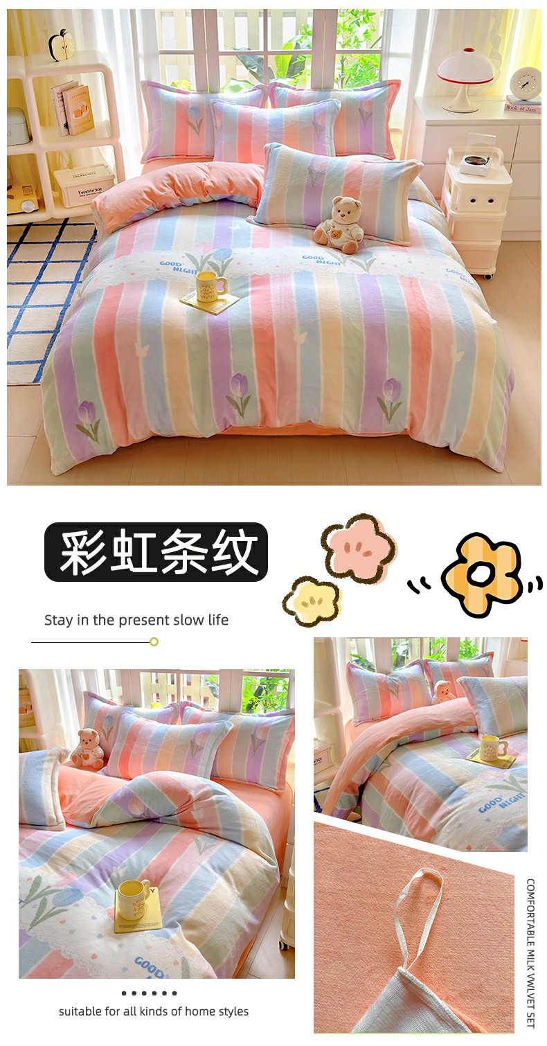 当前位置: 91家纺网 > 商品网购 > 床品套件 > 四件套 > 牛奶绒四件套 > 百寐 2024新款加厚A类牛奶绒印花卡通床单床笠四件套三件套 花曼舞