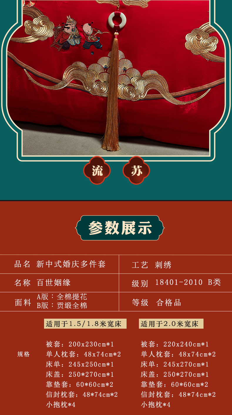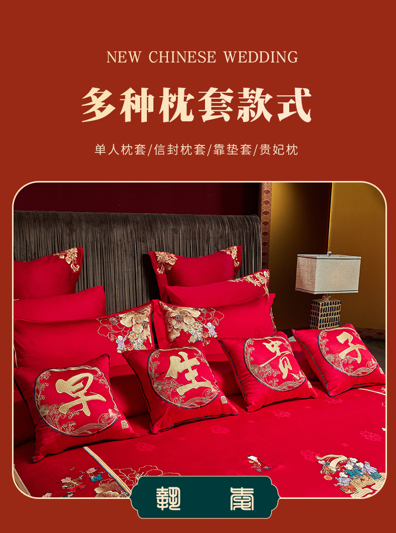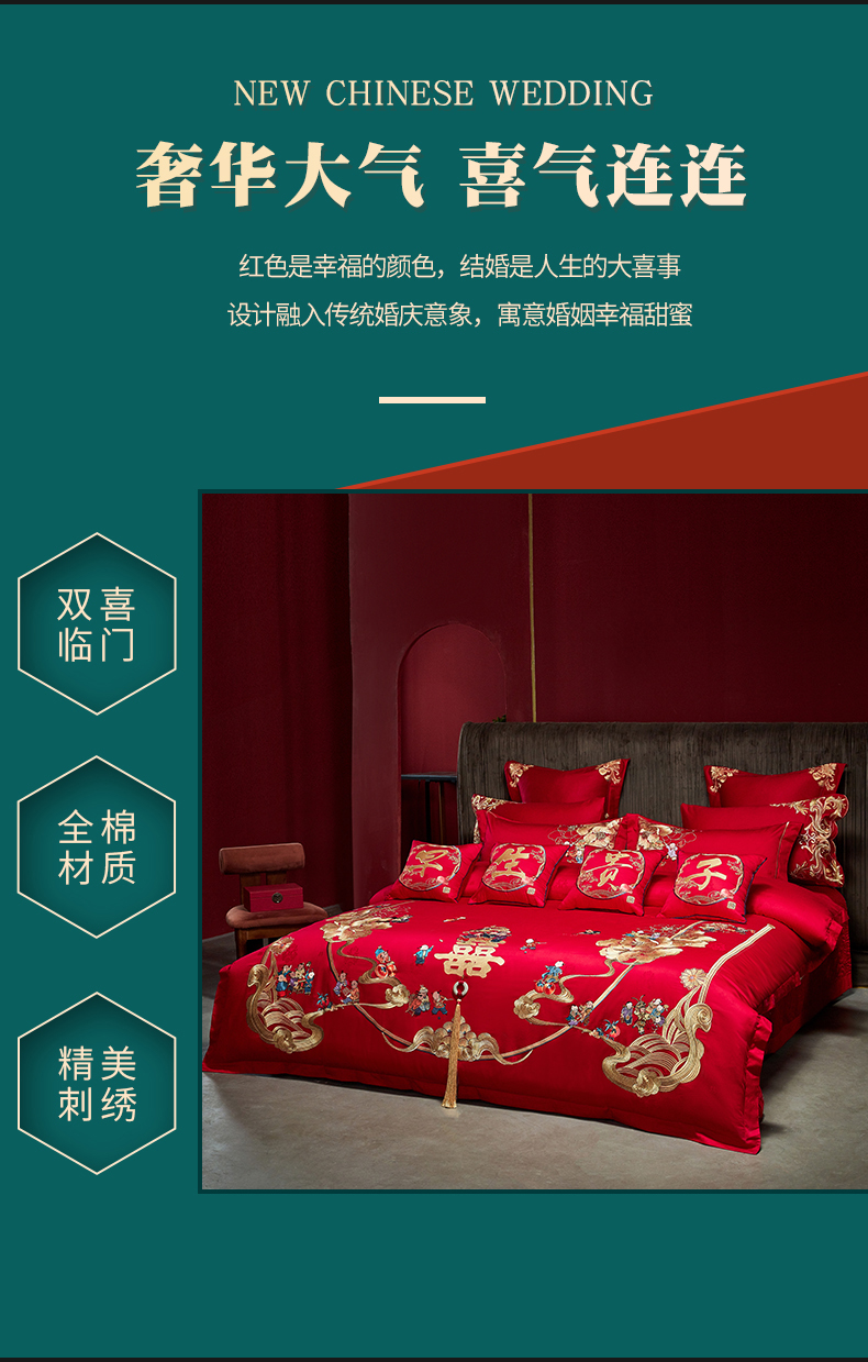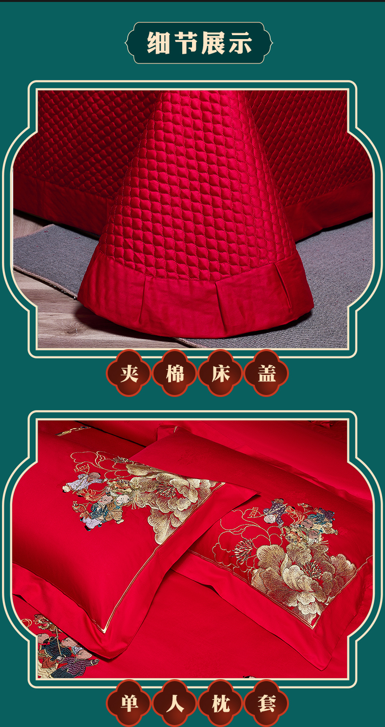 当前位置: 91家纺网 > 商品网购 > 床品套件 > 四件套 > 婚庆四件套 > 宏羽纺家纺 2024新款高支高密纯棉提花婚庆套件系列(控价680)百世姻缘