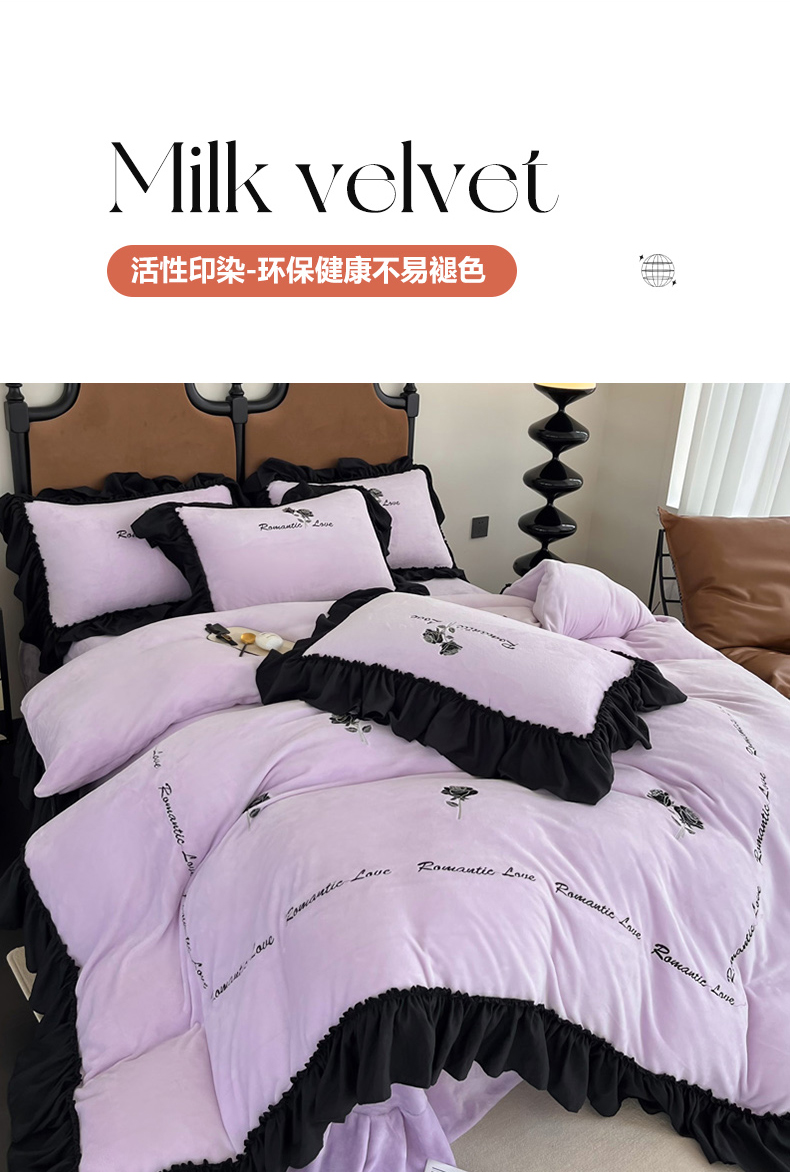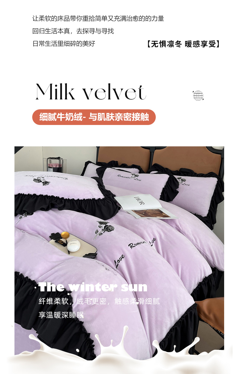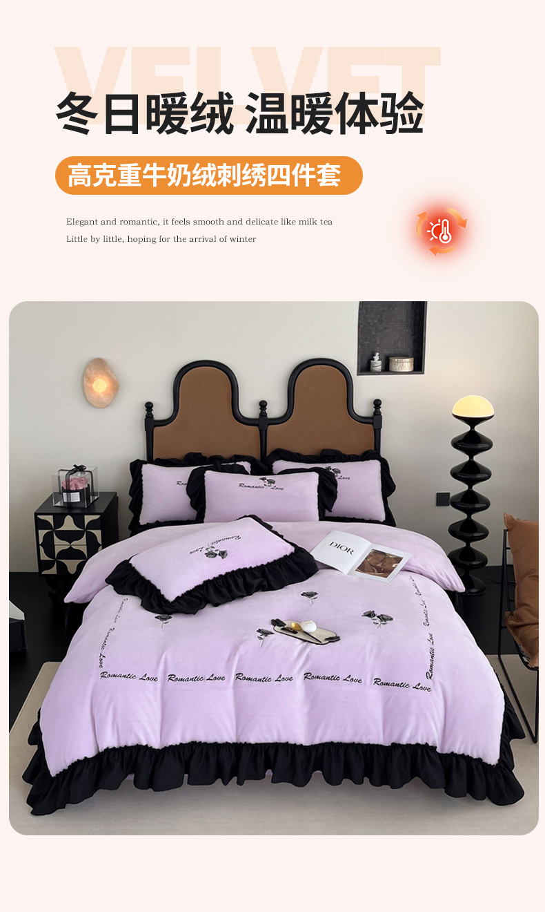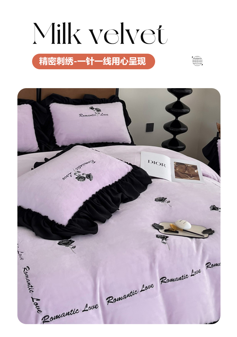 凯美家居 2024新款法式牛奶绒刺绣四件套-欧雅 欧雅-浅紫