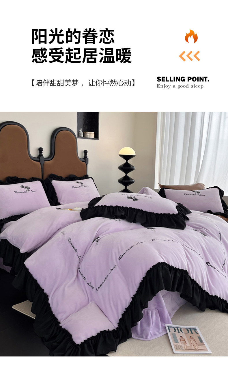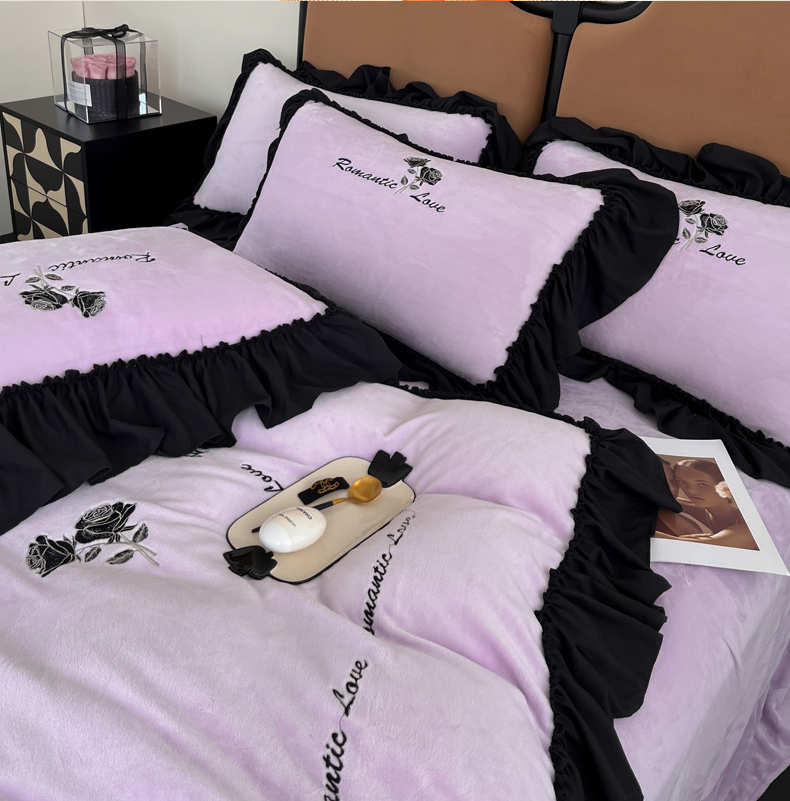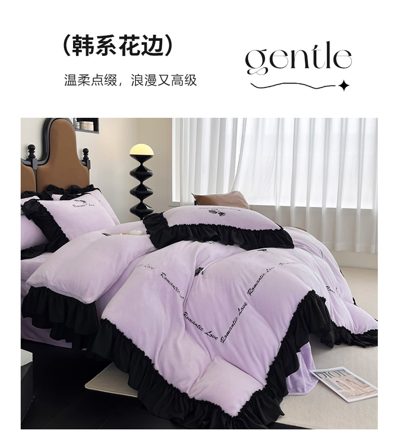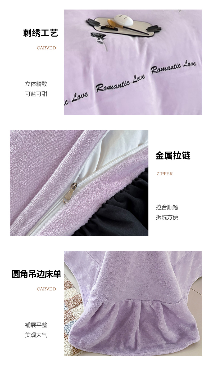 凯美家居 2024新款法式牛奶绒刺绣四件套-欧雅 欧雅-浅紫