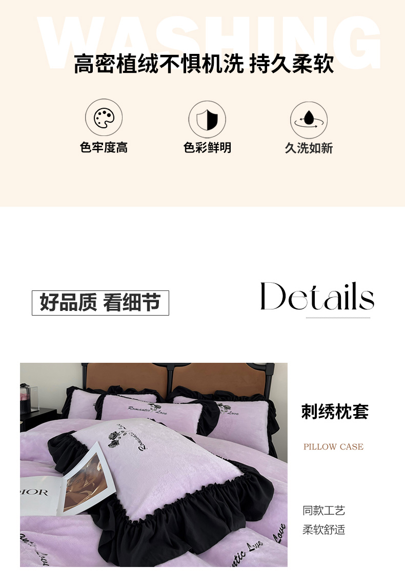 商品名称:凯美家居 2024新款法式牛奶绒刺绣四件套-欧雅 欧雅-浅紫