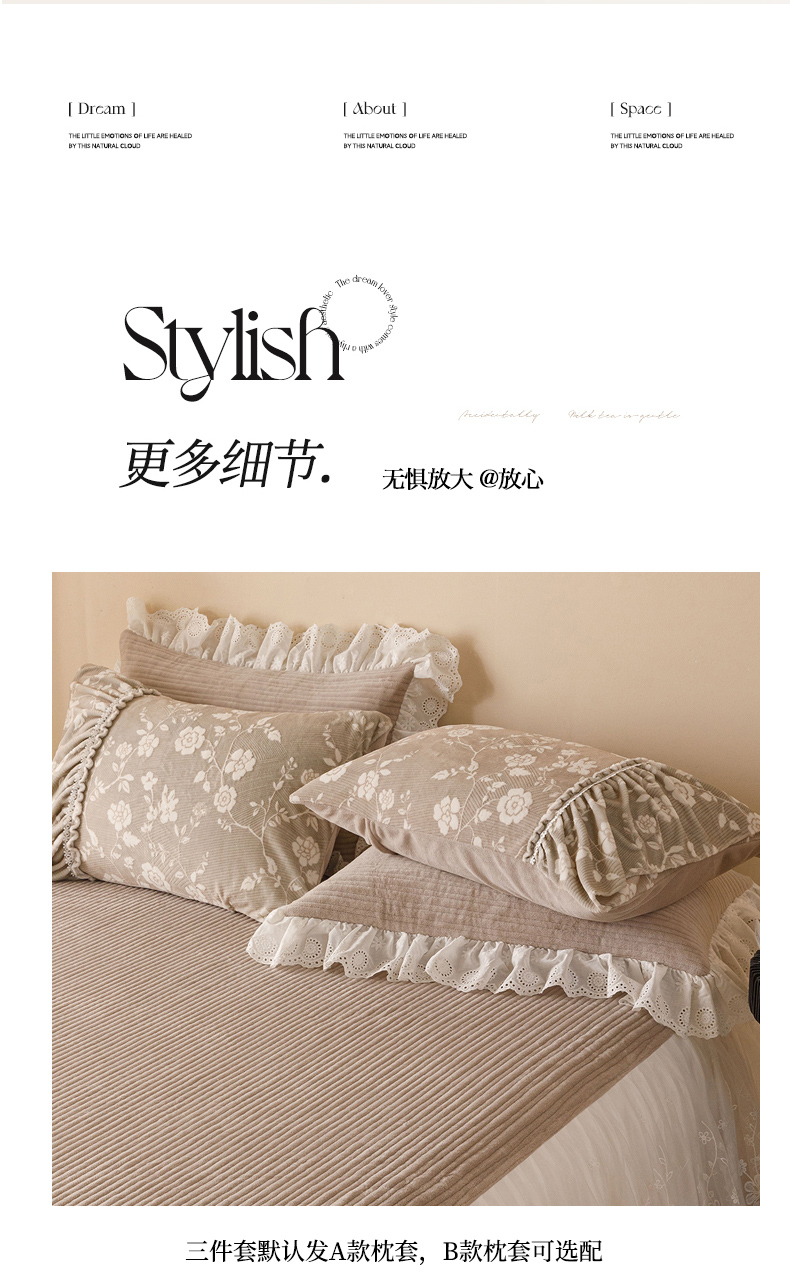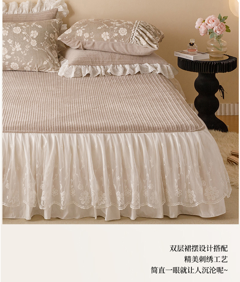 商品名称:胜权家纺 2024秋冬新款5D雕花着色牛奶绒法式奶油风夹棉单床裙 麦咖